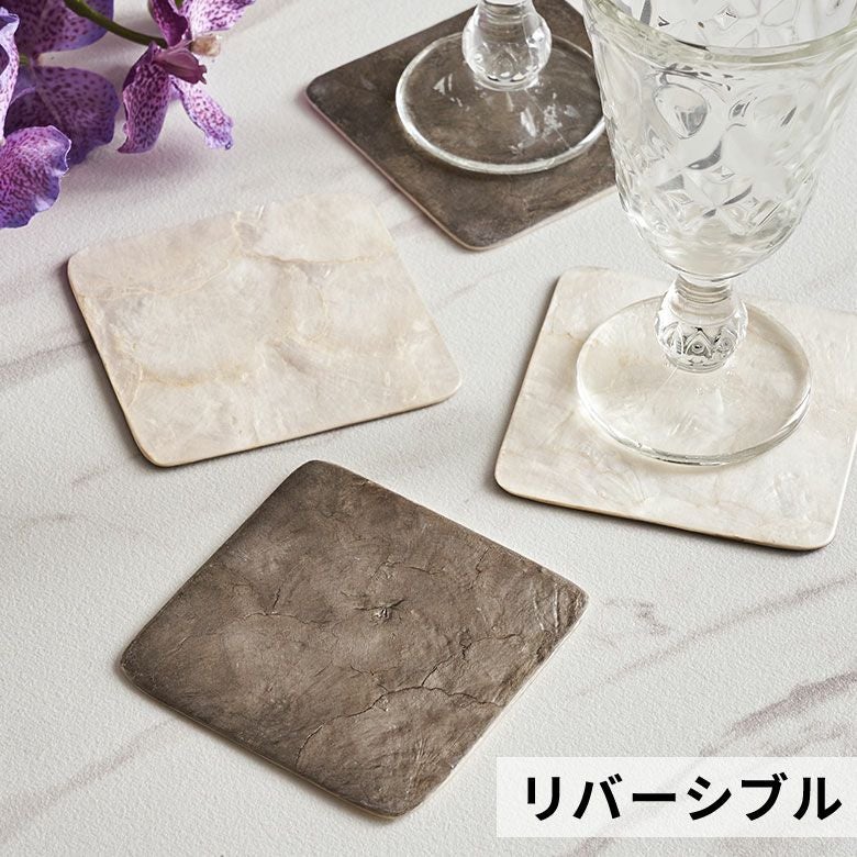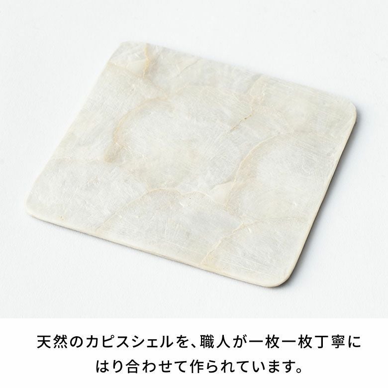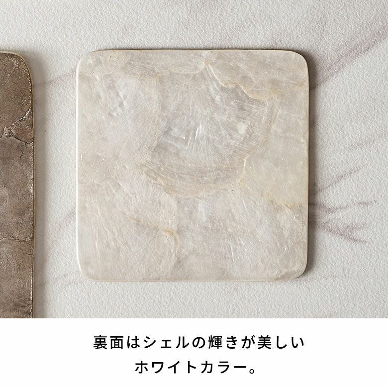 テーブル小物 収納トレイ パーティー クリスマス ハロウィン レストラン カフェ 店舗用 テーブルコーディネート デコレーショントレー ディスプレイトレー 什器 撮影 ギフト プレゼント コースター カピスシェル シェル 貝 スクエア 四角 1枚 リバーシブル 約 W 10cm D 10cm H 1cm トレイ トレー デコレーショントレイ ディスプレイトレイ テーブルウエア ダイニング キッチン キッチン雑貨 おしゃれ 北欧 リゾート 雑貨 インテリア アジアン [14118]