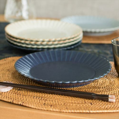 陶磁器 和 洋 中 菊花 パーティ 盛り付け 菊皿 20.6cm 中皿 陶器製 プレート皿 お皿 [92081-gy 92081-nv 92081-iv]【 食器 丸皿 中皿 輪花皿 リンカ 花びら 花型プレート おしゃれ 】
