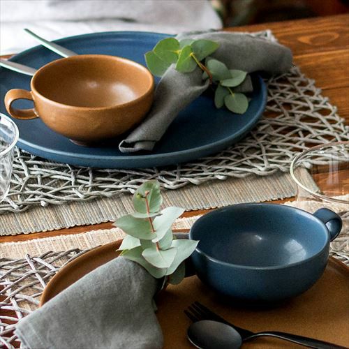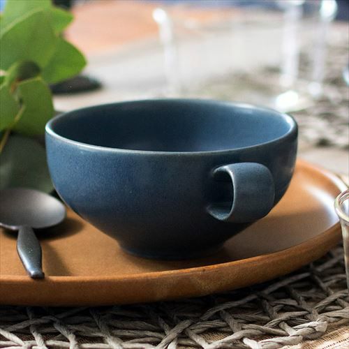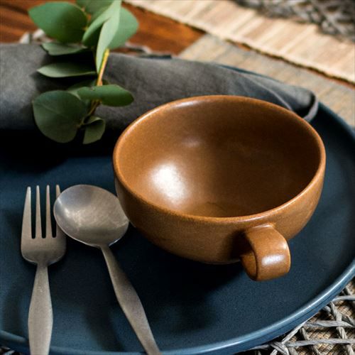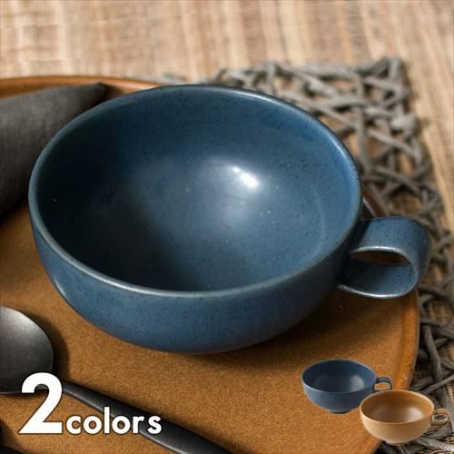 陶器製 和 洋 中 取り皿 鍋用取り皿 口広 おしゃれ ギフト スープカップ 径14.9cm 陶器製 取っ手付き スープマグ [92087-bl 92087-br]【 食器 カップ スープボウル カフェオレボウル おうちカフェ マグカップ デザートカップ 】