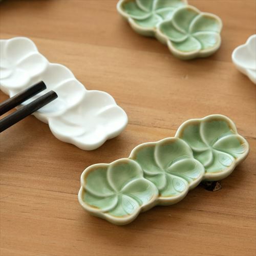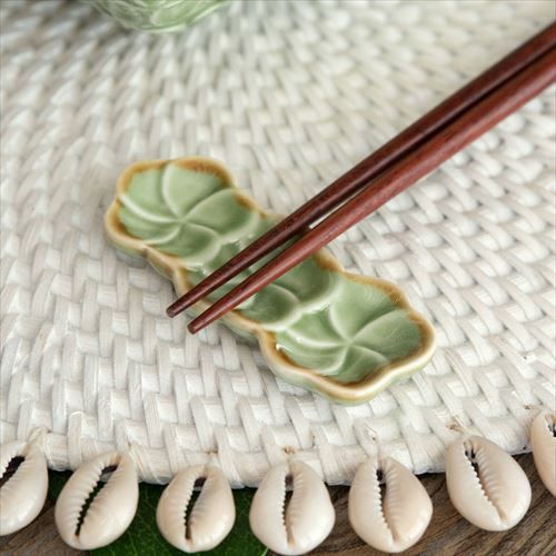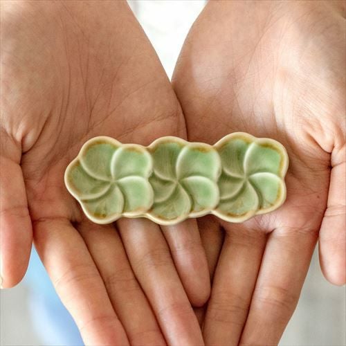 箸置き 花 かわいい テーブルウエア テーブルコーディネート 箸置き プルメリアモチーフ 三輪タイプ 7.9cm ホワイト グリーン 陶器製 [pl3-66815 pl3-66816]【 はし置き 薬味皿 フランジパニ カトラリー置き 可愛い バリ島 リゾート ギフト プレゼント カフェ レストラン おしゃれ キッチン雑貨 アジアン 雑貨 アジアン雑貨 】