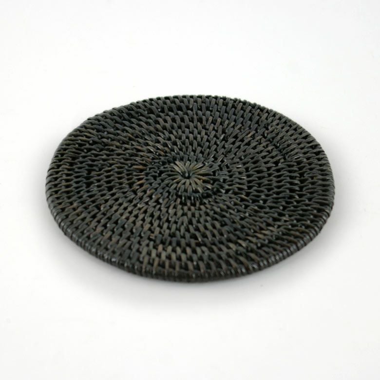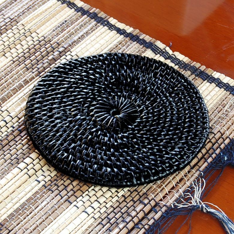天然素材を使ったアジアンコースター。飲み物のグラスはもちろん、カップに入ったデザートのトレイにすればおうちカフェ気分が味わえるバリ島の人気アジアン雑貨。 【メール便対応】アタで編まれた丸型コースター1枚[スタンダードクオリティ]ブラック[2502]【アジアン雑貨のアジア工房本店】
