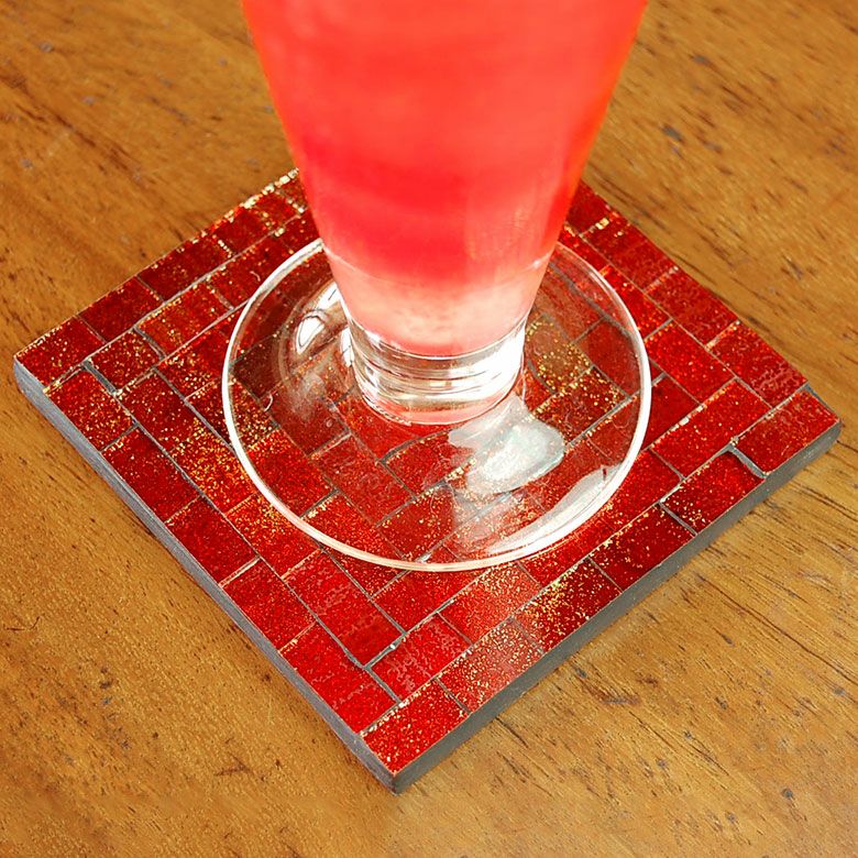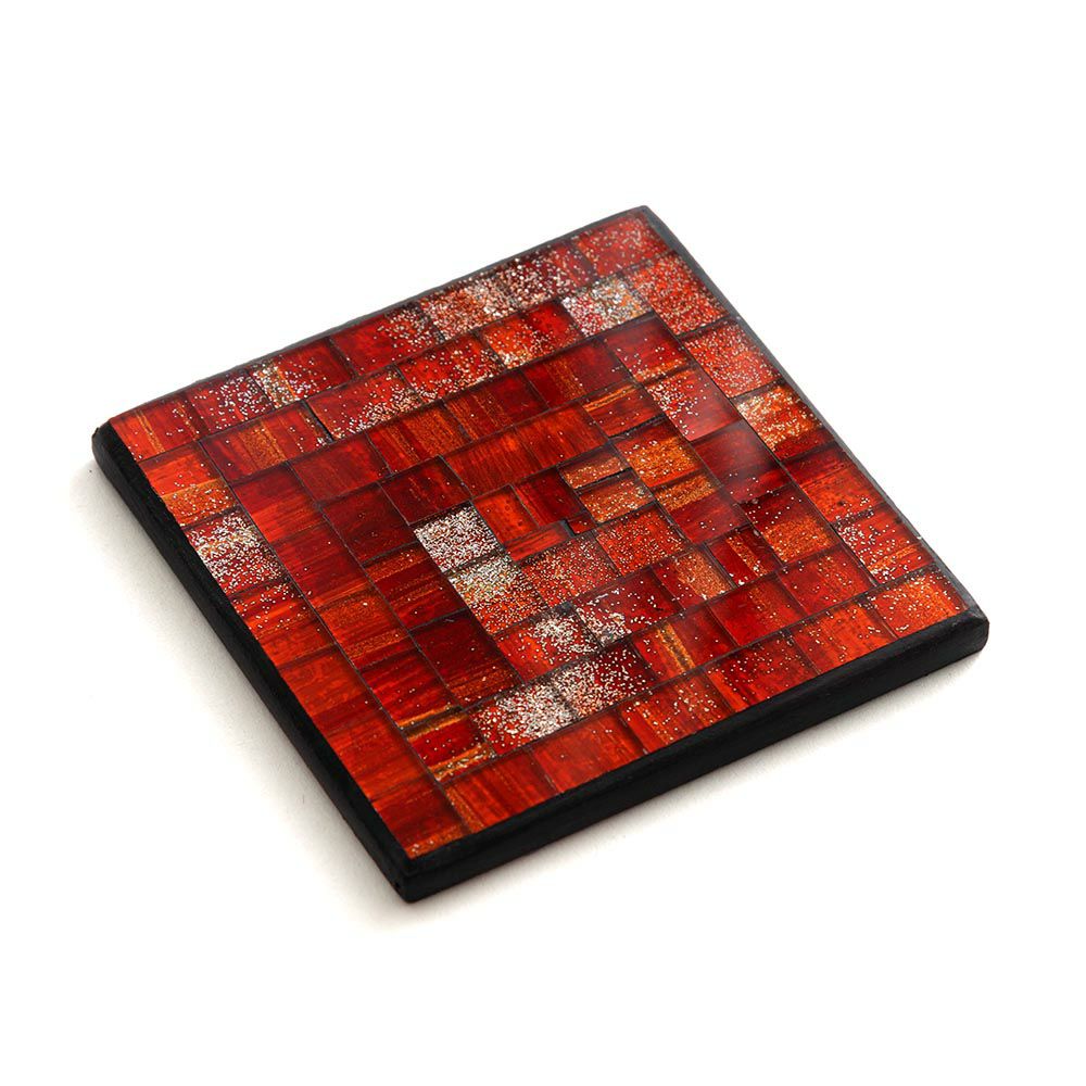 ガラスとテラコッタを使ったアジアンコースター。飲み物のグラスはもちろん、カップに入ったデザートのトレイにすればおうちカフェ気分が味わえるバリ島の人気アジアン雑貨。 ラメの入ったモザイクガラスタイルの四角いキラキラコースター[オレンジ][10483]【正方形 四角形 四角いコースター おうちカフェ キッチン雑貨 トレイ トレー テーブルウェア モダン おしゃれ かわいい ナチュラル ソーサー 受け皿 バリ 雑貨 アジアン雑貨】