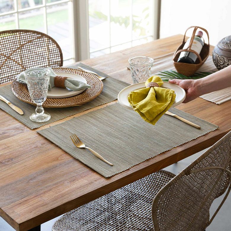天然素材を使ったアジアンランチョンマット。いつもの食卓でレストランの雰囲気を味わえるバリ島の人気アジアン雑貨 ウォーターヒヤシンスのアジアンランチョンマット カーキ×グレー キッチンマット ティーマット テーブルウェア テーブルマット プレースマット プレイスマット ランチョン モダン ランチマット アジアン雑貨 アジア雑貨 四角 食卓 リゾート メール便対応 [10809]
