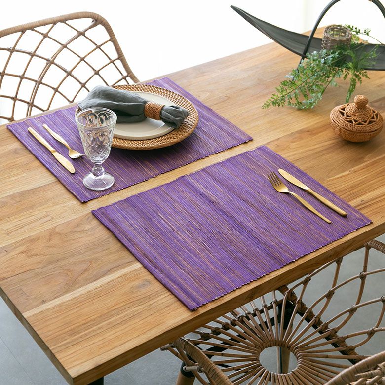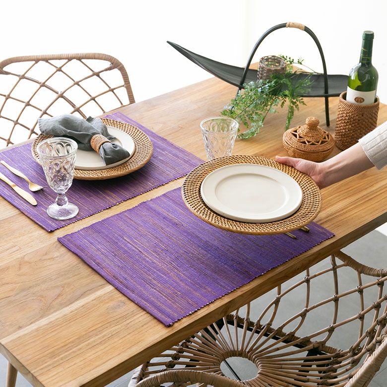 天然素材を使ったアジアンランチョンマット。いつもの食卓でレストランの雰囲気を味わえるバリ島の人気アジアン雑貨 ウォーターヒヤシンスのアジアンランチョンマット パープル×ナチュラル ティーマット テーブルウェア テーブルマット プレースマット モダン ランチマット アジアン雑貨 アジア雑貨 おしゃれ キッチン小物 キッチングッズ バリ雑貨 メール便対応 [10813]