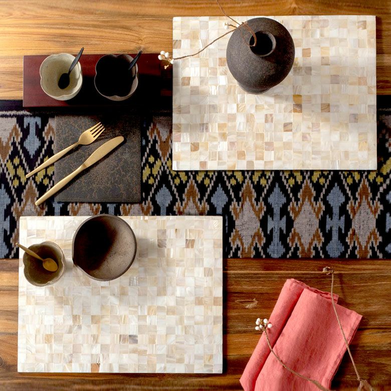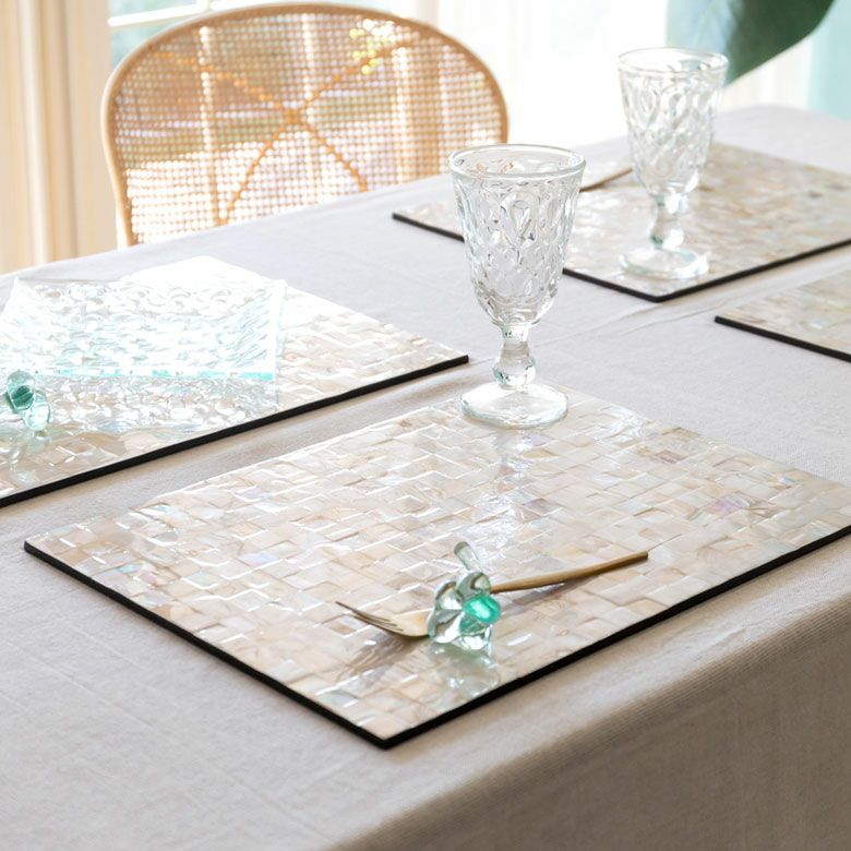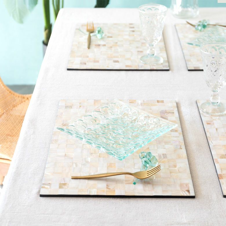 プレイスマット テーブルウェア ランチマット 洗える ランチョンマット シェル モザイク柄 パルシェ [スクエア][51177]【 ランチマット プレースマット プレイスマット テーブルウェア ランチョン 洗える 貝 貝殻 キッチン小物 キッチングッズ キッチン雑貨 バリ雑貨 アジアン雑貨 おしゃれ キッチン小物 モダン リゾート 】