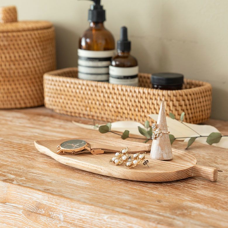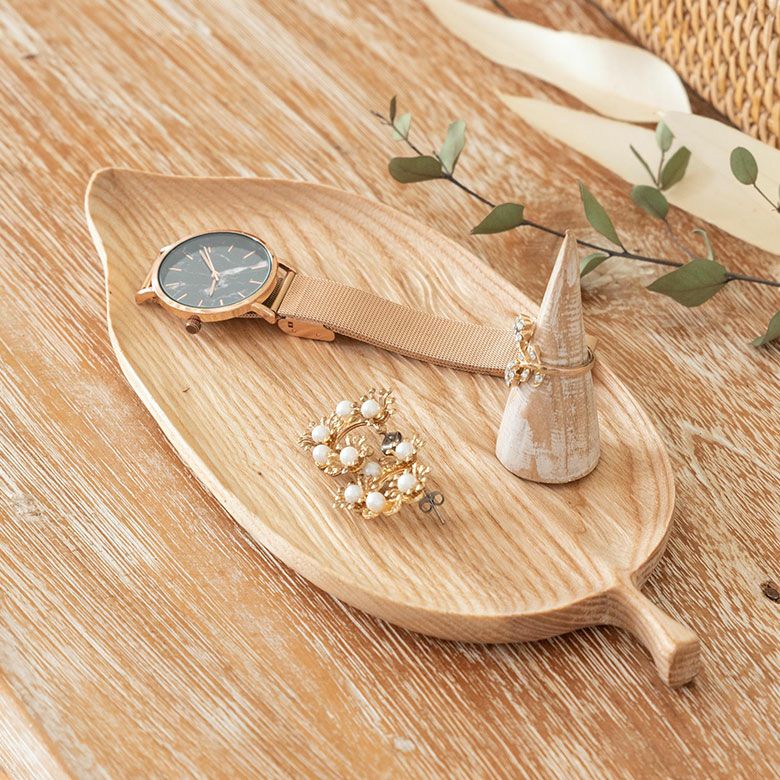 カフェ お菓子 おつまみ 木皿 ランチプレート 食器 ワンプレート ウッドトレイ 葉っぱ リーフ M ナチュラル 木製 トレイ ウッド 約 W 24cm D 11.2cm H 1cm [51304]【 トレー お皿 プレート デコレーション キッチン ダイニング パーティー パン チーズ テーブルコーディネート おしゃれ かわいい 北欧 リゾート バリ アジアン 雑貨 】