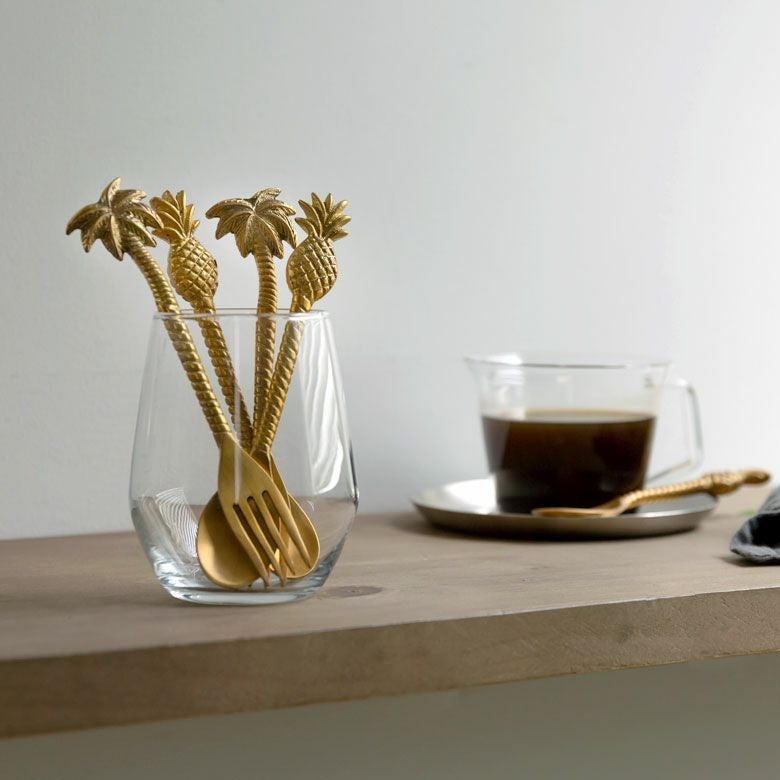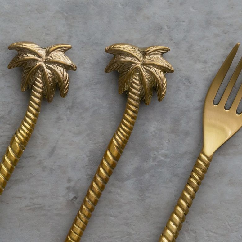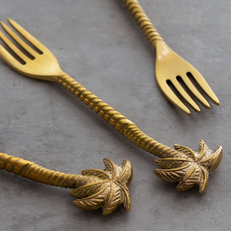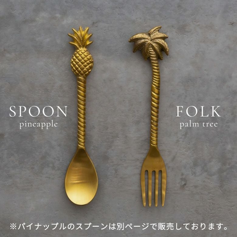 真鍮カトラリー キッチン ダイニング レストラン 店舗 カフェ 【メール便対応】 フォーク 真鍮 カトラリー パイナップル ヤシ パームツリー マット ゴールド 約 W 3cm D 14cm H 1cm [34512]【 リードフリー アンティーク風 ケーキフォーク ケーキ フルーツ デザート スイーツ パーティー 南国 リゾート おしゃれ アジアン 雑貨 】
