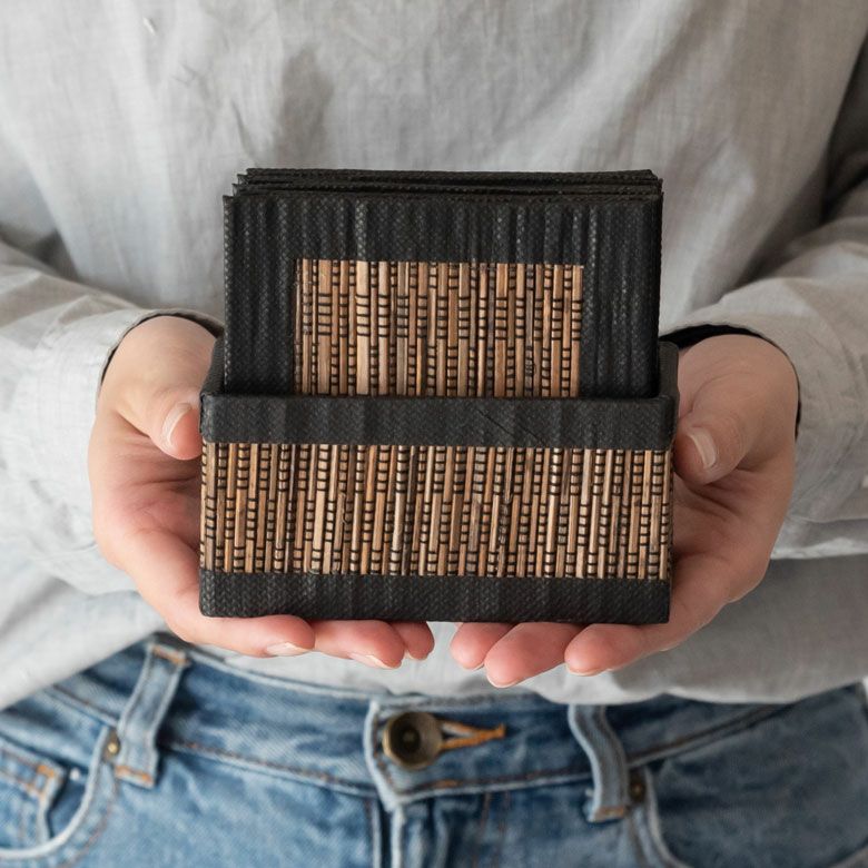 天然素材を使ったアジアンコースター。飲み物のグラスはもちろん、カップに入ったデザートのトレイにすればおうちカフェ気分が味わえるバリ島の人気アジアン雑貨。 パームリディのコースター10枚セット スタンド収納ケース付き 正方形 四角形コースター トレー テーブルウェア モダン おしゃれ かわいい ナチュラル ソーサー バリ雑貨 アジアン雑貨 キッチン小物 キッチングッズ キッチン雑貨 アジア雑貨 エスニック [10435]