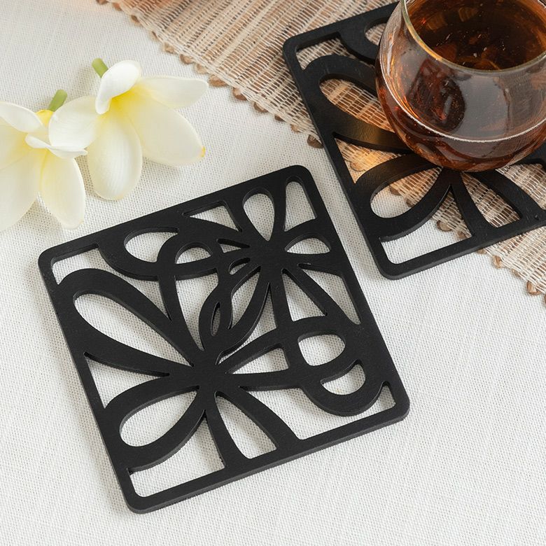 木彫りのアジアンコースター。飲み物のグラスはもちろん、カップに入ったデザートのトレイにすればおうちカフェ気分が味わえるバリ島の人気アジアン雑貨。 【メール便対応】モダンなデザインの木製アジアンコースター[11389]【 MULIA ムリア 木彫り 正方形 四角形 四角いコースター おうちカフェ キッチン雑貨 トレイ トレー テーブルウェア モダン おしゃれ かわいい ナチュラル ソーサー 受け皿 バリ 雑貨 アジアン雑貨】