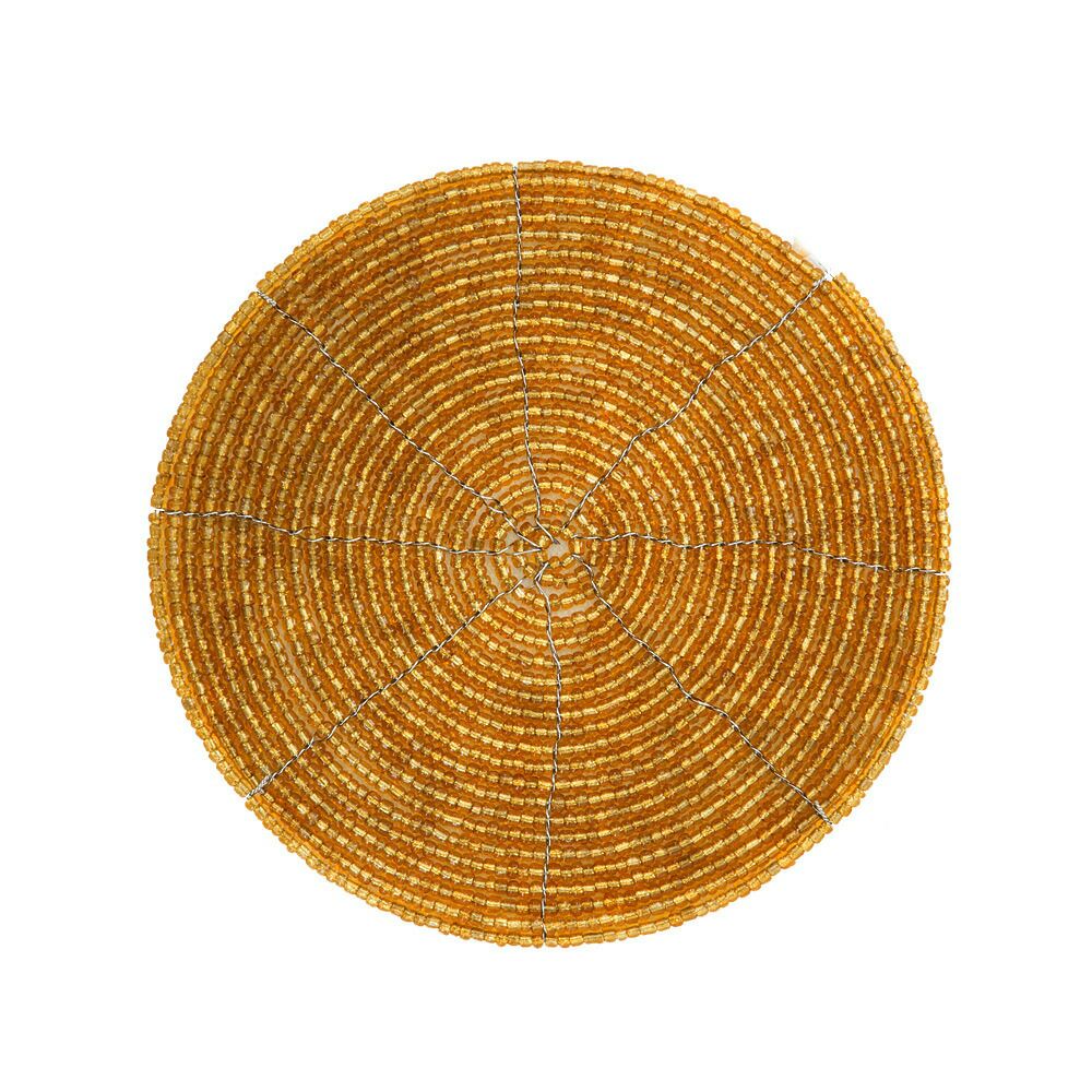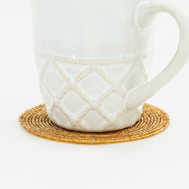 ビーズを使ったアジアンコースター。飲み物のグラスはもちろん、カップに入ったデザートのトレイにすればおうちカフェ気分が味わえるバリ島の人気アジアン雑貨。 【メール便対応】バリ島のキラキラビーズのコースター[ゴールド][10194-SLV]【アジアン雑貨のアジア工房本店】