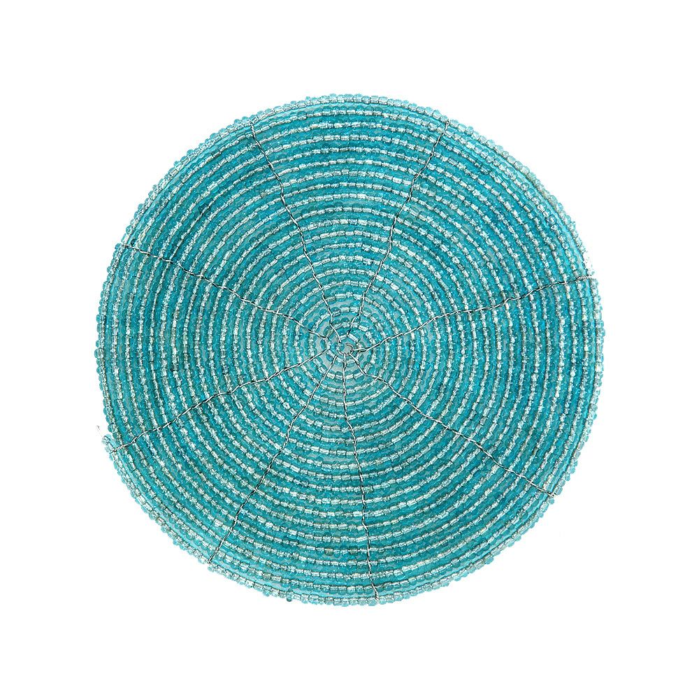 ビーズを使ったアジアンコースター。飲み物のグラスはもちろん、カップに入ったデザートのトレイにすればおうちカフェ気分が味わえるバリ島の人気アジアン雑貨。 【メール便対応】バリ島のキラキラビーズのコースター[ウォーターブルー][7422-SLV]【アジアン雑貨のアジア工房本店】