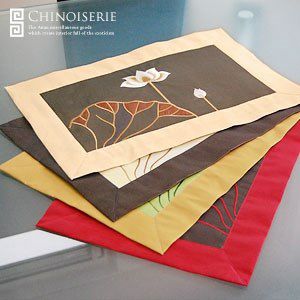 シルクでできた布製アジアンランチョンマット。ベトナムの人気アジアン雑貨 蓮の花の刺繍が綺麗なベトナム製アジアンランチョンマット 4色展開 [vn50108-vn50309-vn50310-vn50311]【アジアン雑貨のアジア工房本店】
