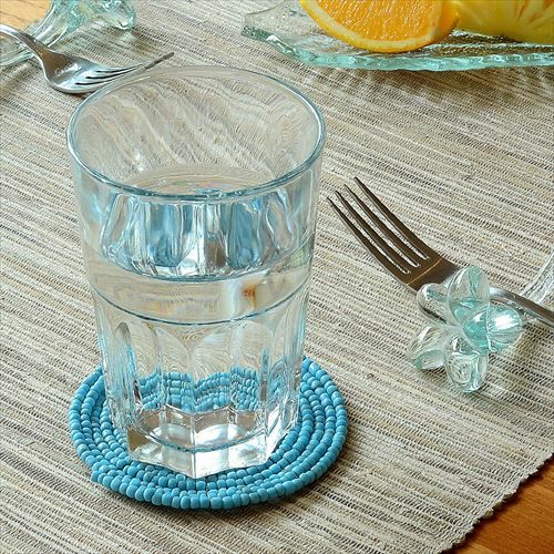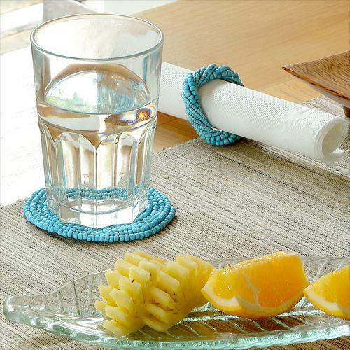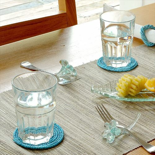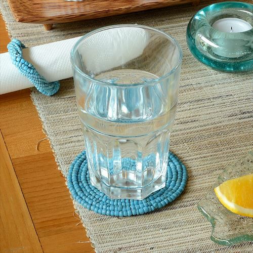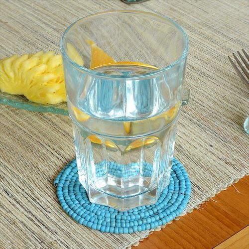 インドネシアバリ島直輸入!ターコイズカラーのコースター。 【メール便対応】バリ島の大きめビーズを使ったターコイズカラーのコースター(13400)【ビーズ 丸形 ブルー 青 水色 ハンドメイド テーブル コーディネート アジアン リゾー トテイスト 雑貨 リゾート おしゃれ かわいい シンプル】