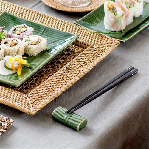 バナナリーフ柄角箸置き。リゾート風テーブルコーディネイトに。 バナナリーフ柄 箸置き(66539)【陶器 お箸置き はしおき リーフ柄 バナナの葉っぱ 食器 おしゃれ 和食器 ナチュラルテイスト リゾート テーブルウェア フォーク置き スプーン置き 南国 キッチン雑貨 グリーン 緑 新生活 バリ アジア アジアン雑貨】