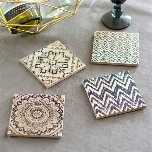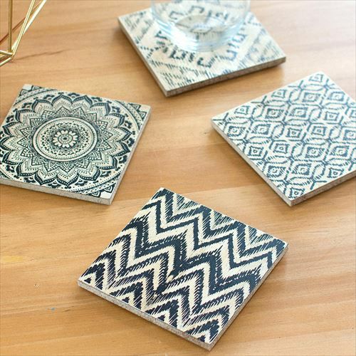 1枚ずつ異なるデザインがプリントされたコースター4枚セット。 【4柄セット】アジアンテイスト コースター 4枚セット (66586)【コースター おしゃれ かわいい 四角 スクエア 正方形 小物トレイ トレー MDF キッチン テーブル リゾート オリエンタル 飲食店 店舗用 ディスプレイ アジアン雑貨 アジア雑貨】