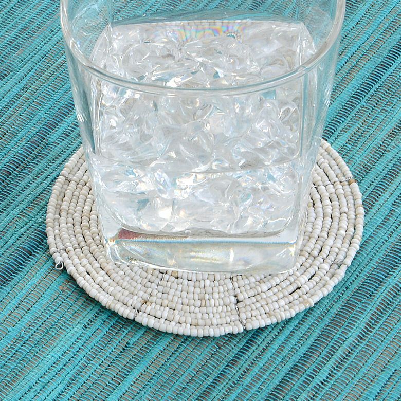 天然素材を使ったアジアンコースター。飲み物のグラスはもちろん、カップに入ったデザートのトレイにすればおうちカフェ気分が味わえるバリ島の人気アジアン雑貨。 【メール便対応】トリコロールカラーが可愛いビーズのコースター[10195]【アジアン雑貨のアジア工房本店】