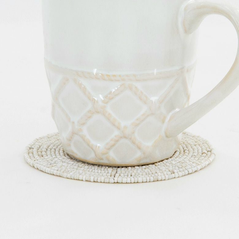 ビーズを使ったアジアンコースター。飲み物のグラスはもちろん、カップに入ったデザートのトレイにすればおうちカフェ気分が味わえるバリ島の人気アジアン雑貨。 【メール便対応】バリ島のキラキラビーズのコースター[サンドベージュ][7425-SLV]【アジアン雑貨のアジア工房本店】