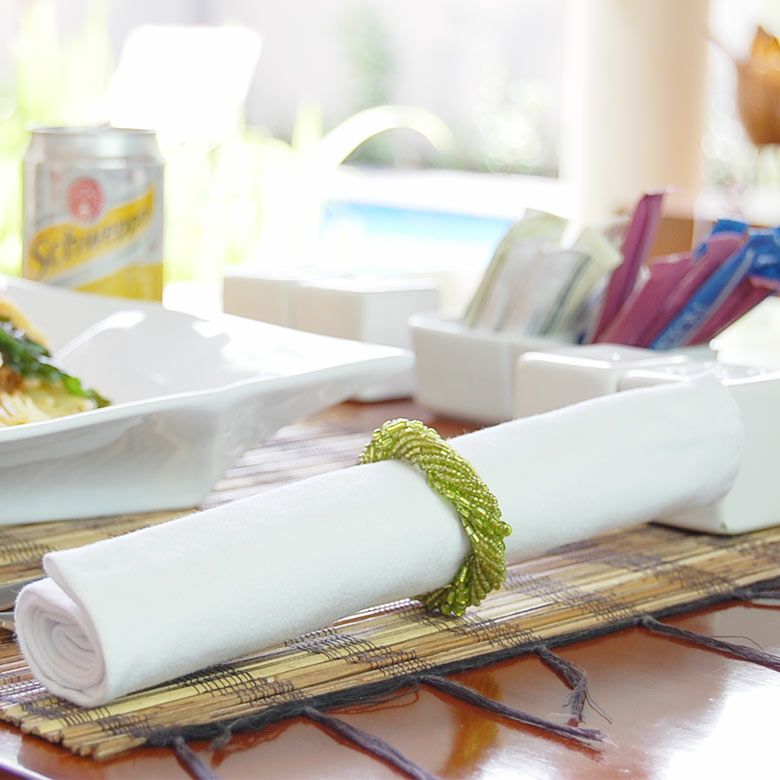 選べる4色展開 新生活 【メール便対応】ビーズで作られた綺麗な アジアン ナプキンリング グリーンカラー[7365]【バリ島のアジアンナプキンリング ビーズ製ナプキンホルダー アジアンキッチン雑貨 レストラン店舗用品 おしゃれ なぷきん 収納 バリ 雑貨 アジア雑貨 アジアン雑貨】