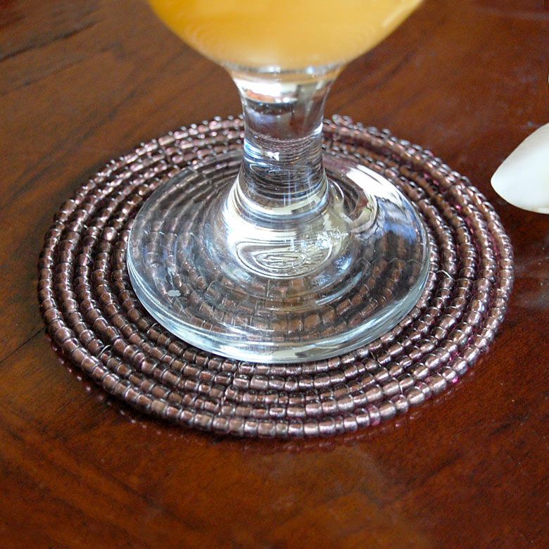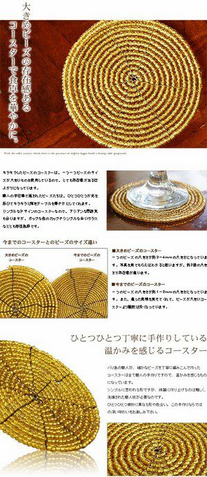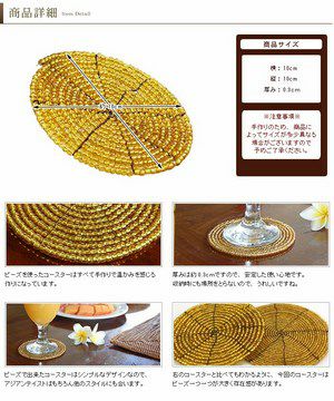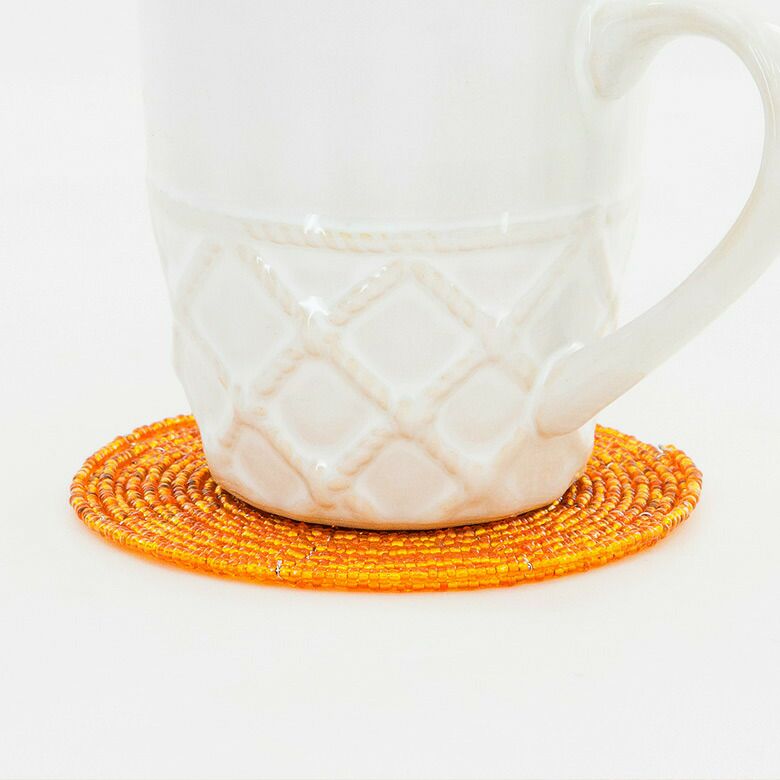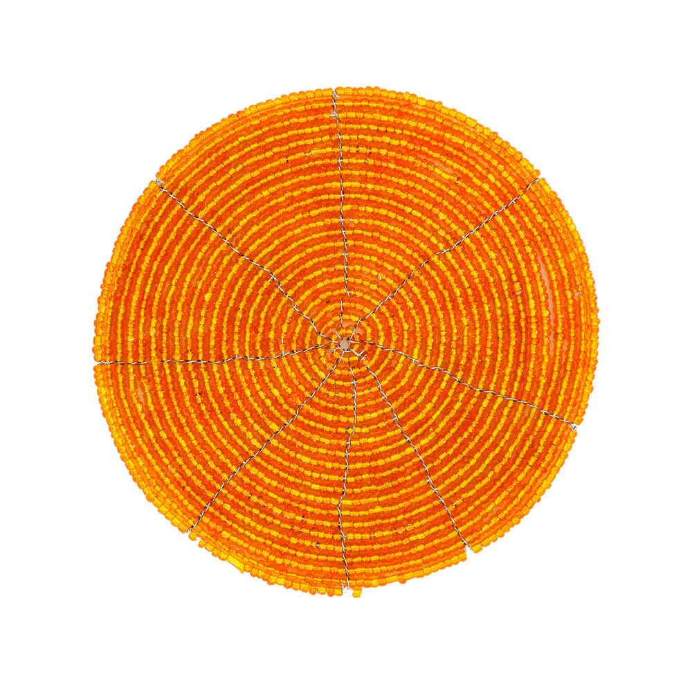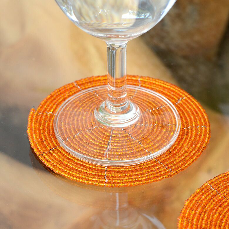 ビーズを使ったアジアンコースター。飲み物のグラスはもちろん、カップに入ったデザートのトレイにすればおうちカフェ気分が味わえるバリ島の人気アジアン雑貨。 【メール便対応】バリ島のキラキラビーズのコースター[オレンジ][10192-SLV]【アジアン雑貨のアジア工房本店】