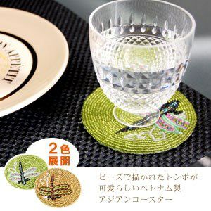 ビーズを使ったアジアンコースター。飲み物のグラスはもちろん、カップに入ったデザートのトレイにすればおうちカフェ気分が味わえるベトナムの人気アジアン雑貨。 【メール便対応】トンボ柄のビーズコースター2色展開[vn50370-vn50371]【アジアン雑貨のアジア工房本店】