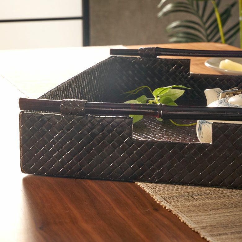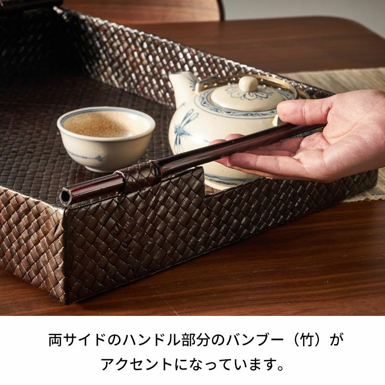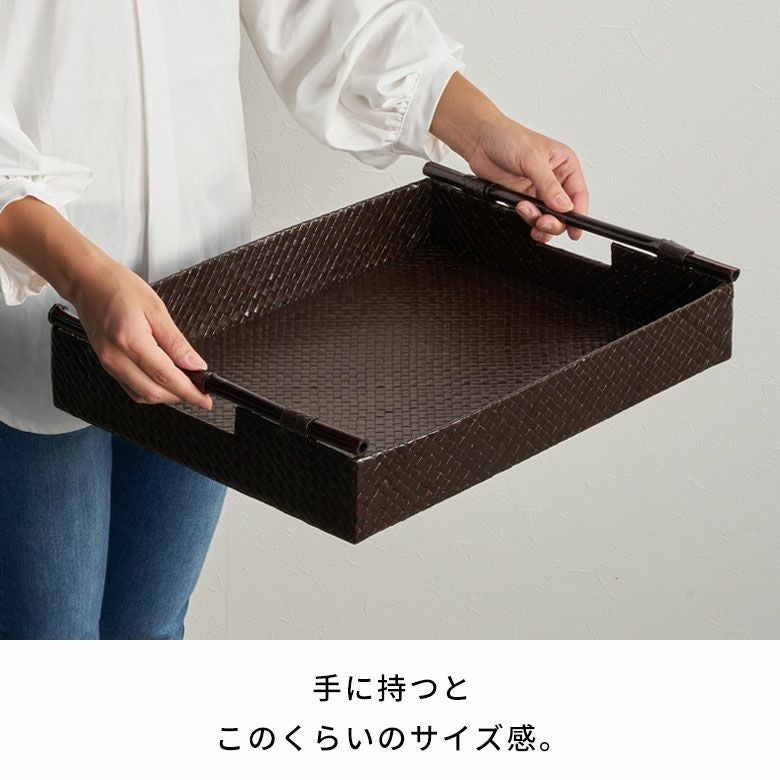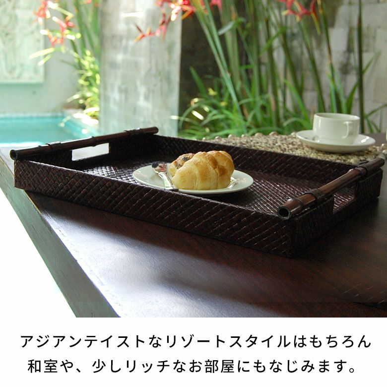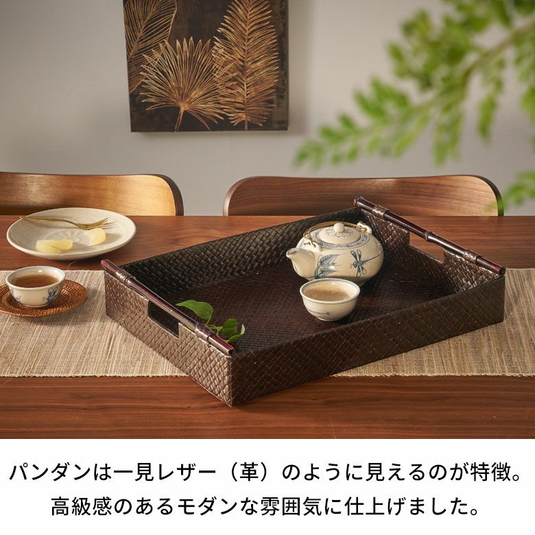 トレイ おぼん 収納トレー サービストレー アジアン雑貨 バリ ハワイ リゾート おしゃれ 店舗用 スパ サロン キッチン雑貨 引っ越し 結婚 誕生日 祝い ギフト プレゼント トレイ サービストレイ お盆トレイ パンダンで編まれたバンブーハンドル付きトレイ 約 W 45.5cm D 35cm H 9cm パンダン 竹 収納トレー 持ち手付き サービストレー キッチントレー バリ バリ雑貨 ハワイ アジアン雑貨 アジアン 雑貨 [10463]