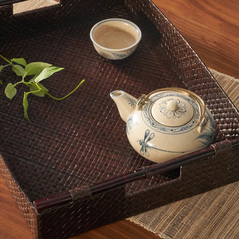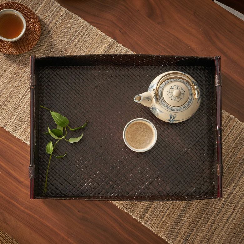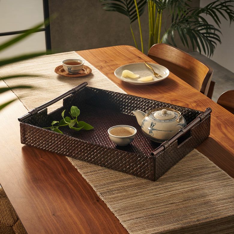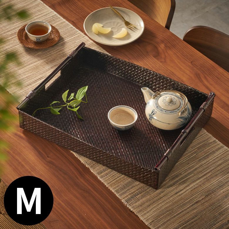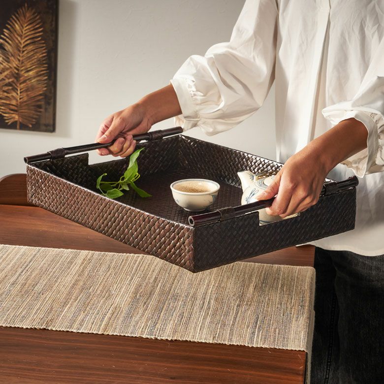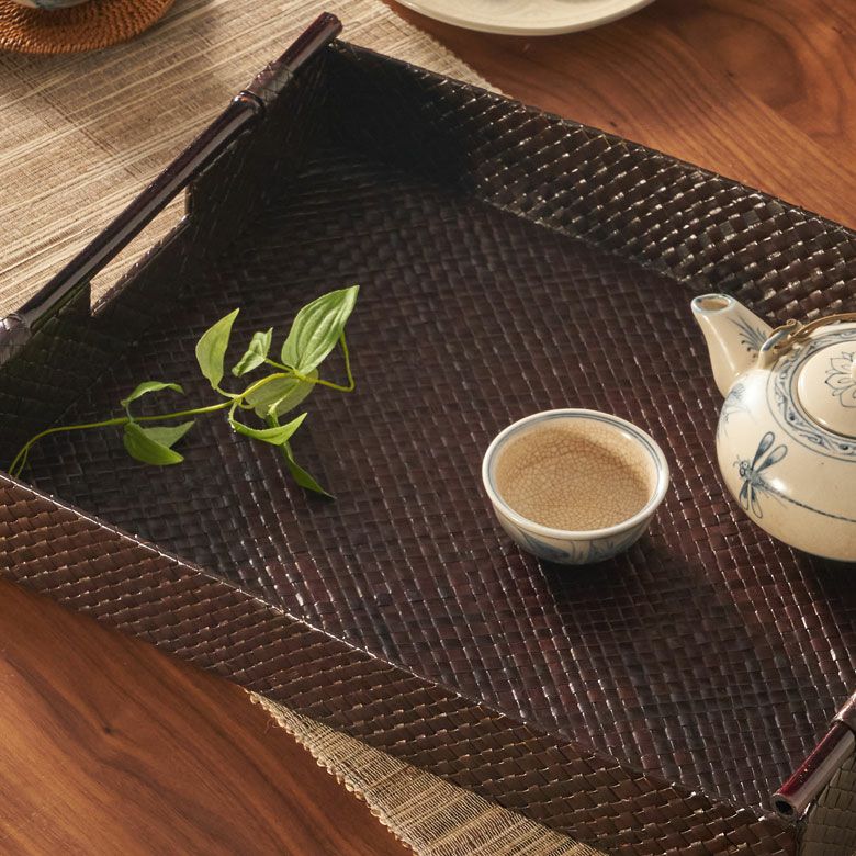 トレイ おぼん 収納トレー サービストレー アジアン雑貨 バリ ハワイ リゾート おしゃれ 店舗用 スパ サロン キッチン雑貨 引っ越し 結婚 誕生日 祝い ギフト プレゼント トレイ サービストレイ お盆トレイ パンダンで編まれたバンブーハンドル付きトレイ 約 W 45.5cm D 35cm H 9cm パンダン 竹 収納トレー 持ち手付き サービストレー キッチントレー バリ バリ雑貨 ハワイ アジアン雑貨 アジアン 雑貨 [10463]