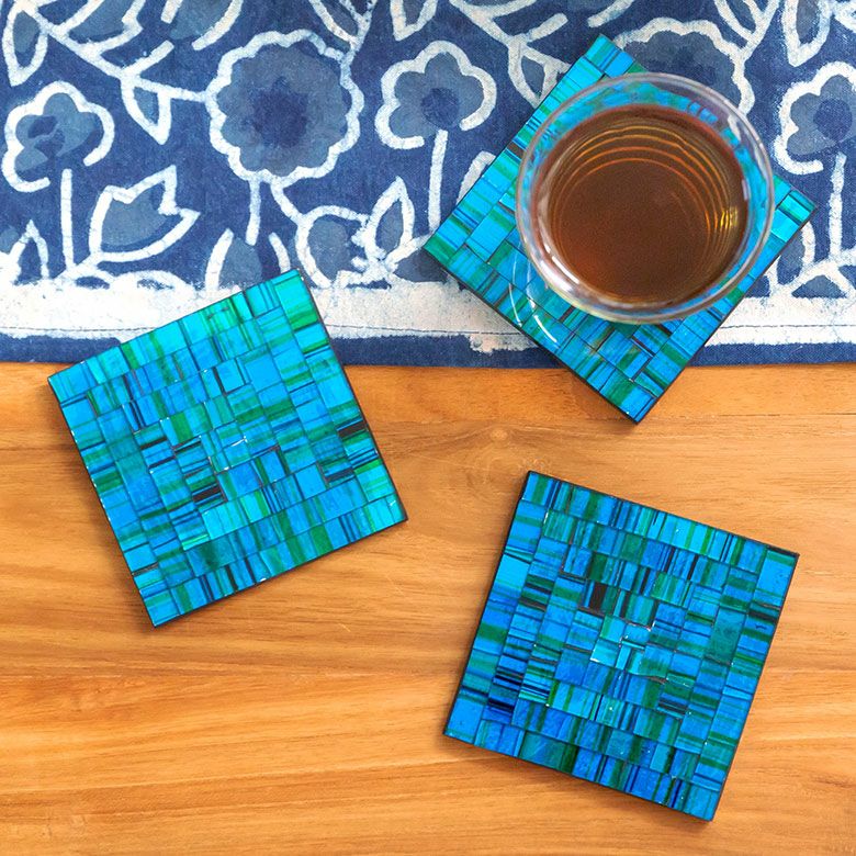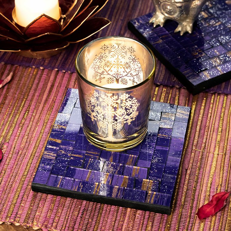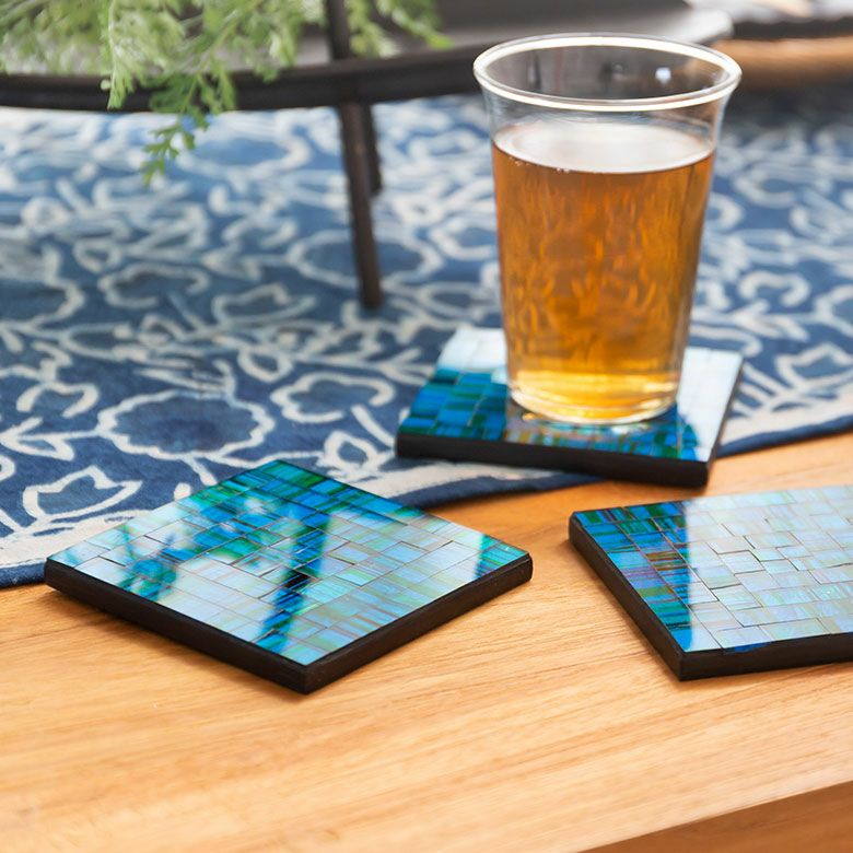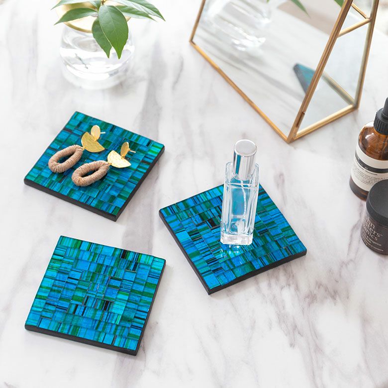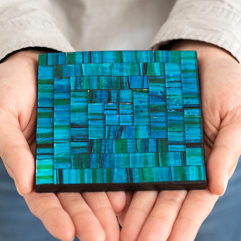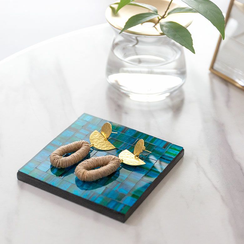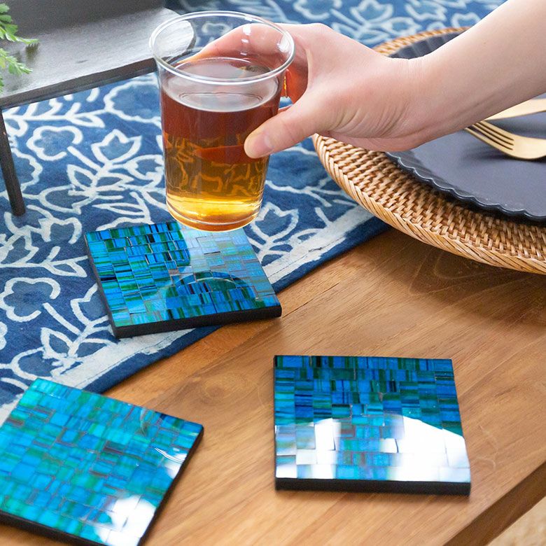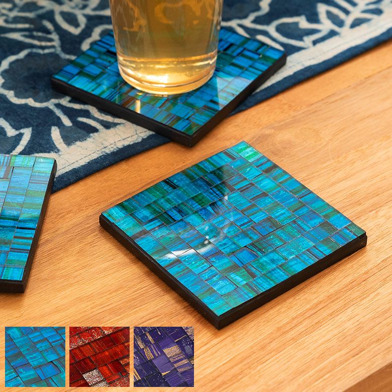 パーティー プレゼント ギフト ダイニング 誕生日 コースター モザイク ガラス タイル スクエア 四角 正方形 約 W 10cm D 10cm H 1cm ブルー オレンジ バイオレット [1048]【 トレイ トレー テーブル ウエア グッズ 小物 キッチン雑貨 コーディネート ハンドメイド おしゃれ 北欧 リゾート モダン バリ アジアン 雑貨 】