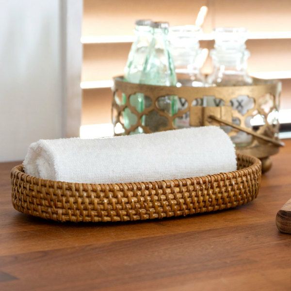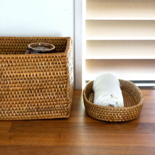 カトラリーケースにおすすめ。バリ島の人気アジアン雑貨 ラタンとアタで編まれた楕円形のアジアンバスケット[Bタイプ][10176B]【トレー かごトレイ 小物入れトレイ 小物入れ 収納バスケット 籠 カゴ アジアン雑貨 エスニック 収納カゴ 収納かご ナチュラル バリ雑貨 インテリア リゾート おしゃれ バリ島 アタ製品】