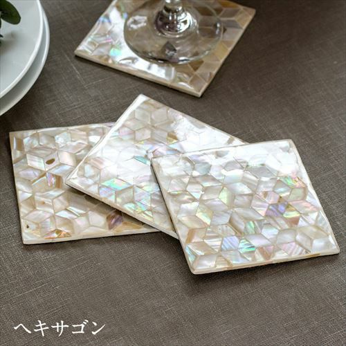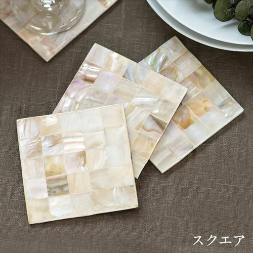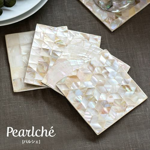パールシェルを貼り合わせて作ったスクエアタイプのコースター。 パールシェルのコースター パルシェ [スクエア](c-vn5112)【 Pearlche 四角 スクエア 四角いコースター シェル小物 貝殻 テーブルウェア モダン おしゃれ ナチュラル キッチン小物 キッチングッズ キッチン雑貨 エスニック リゾート アジアン雑貨】