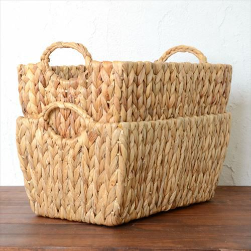 カゴ 籠バスケット スクエアバスケット ランドリーバスケット かごバスケット 持ち手付き スクエア型 深型 Lサイズ ウォーターヒヤシンス製 幅約40cm 高さ約22cm [va51145] 【 かご バスケット 籠 カゴ バスケット収納 収納 収納ボックス 収納かご 雑貨 ヒヤシンスバスケット おしゃれ アジアン 雑貨 アジアン雑貨 北欧 】