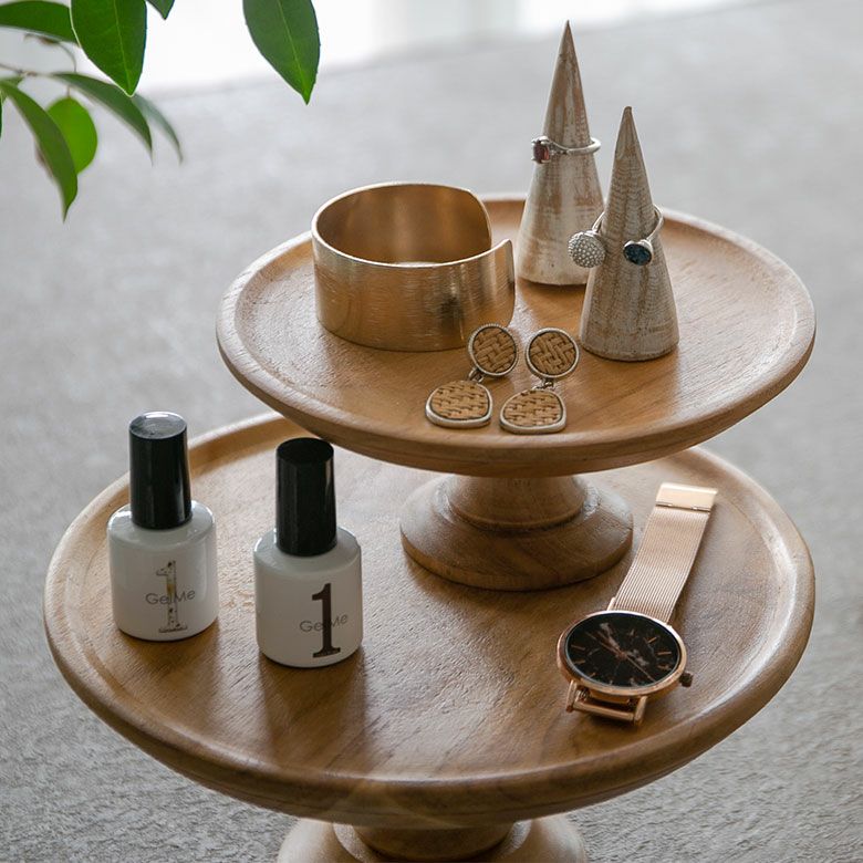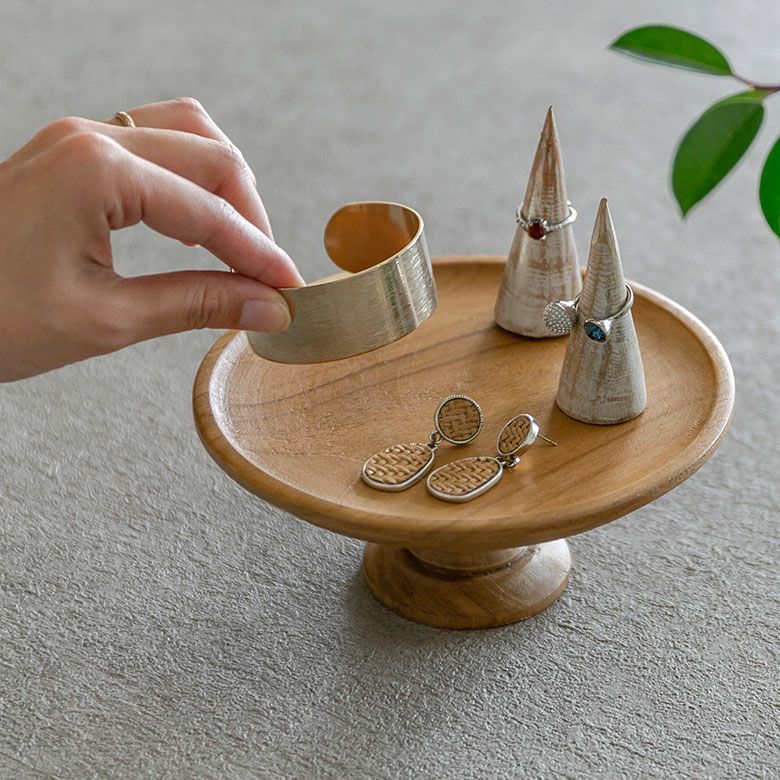 ナチュラル アクセサリー パーティー キャンドル オブジェ ケーキスタンド 木 木製 1段 Sサイズ 直径 16cm H 7cm ブラウン [13966]【 ケーキ トレー トレイ スタンド 台 タワー スタンドトレイ コンポート デコレーショントレイ チークウッド アンティーク風 おしゃれ かわいい 北欧 リゾート アジアン 雑貨 アジアン雑貨 バリ 】
