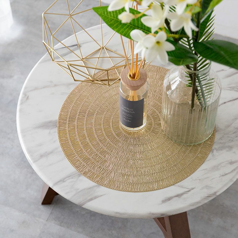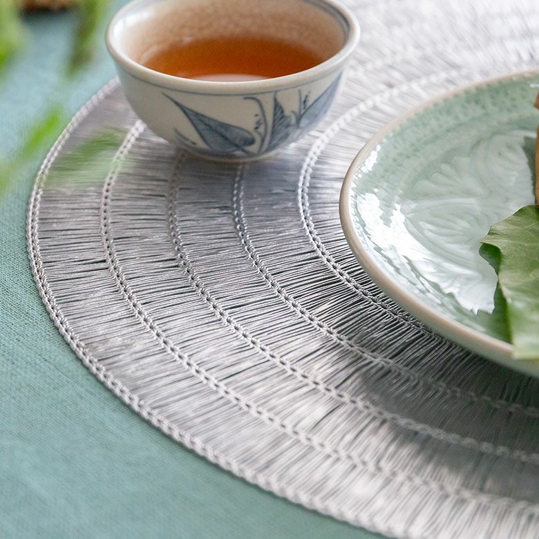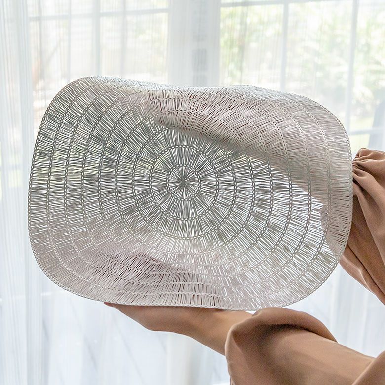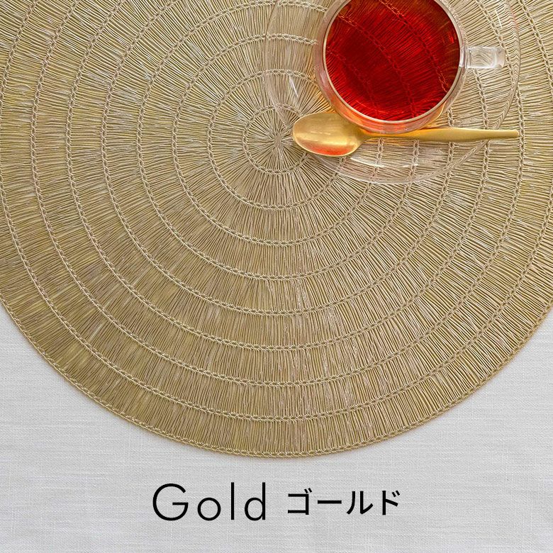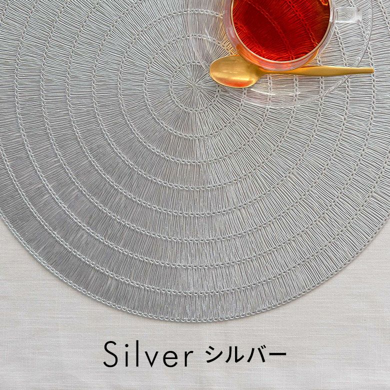 敷物 テーブルマット ダイニング キッチン テーブルコーデ ランチョンマット プレースマット ラウンド 円形 丸形 ゴールド シルバー 金色 銀色 約 W 38cm D 38cm [67047]【 プレイスマット ランチマット 透かし模様 透かし柄 水洗い可 洗える 撥水 防水 おしゃれ 北欧 ハワイアン リゾート 南国 ホテルライク アジアン 雑貨 】