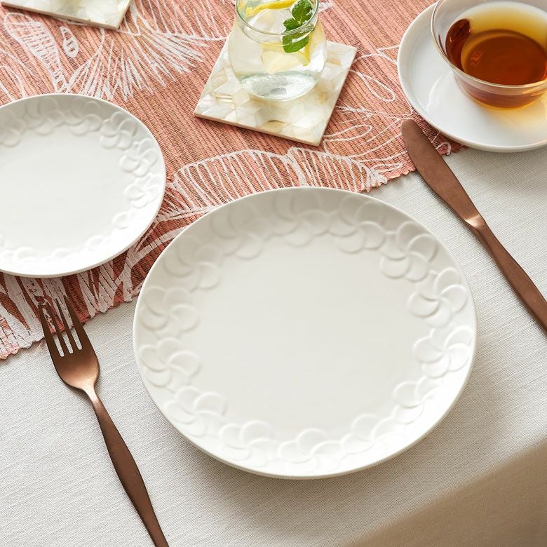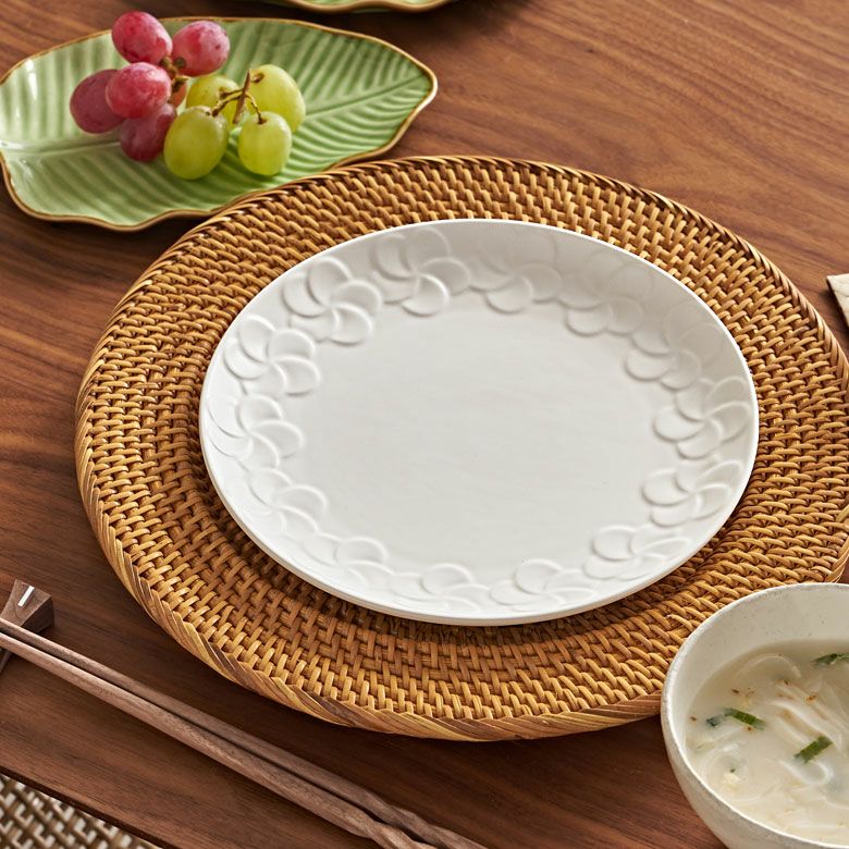 サークル 丸い皿 白食器 テーブルコーディネート ワンプレート セミマット ブッフェ皿 パスタ皿 ランチプレート オリエンタル エスニック エスニック料理 ピザプレート オードブル プレート プルメリア 丸皿 ラウンド 約 W 21cm D 21cm H 2cm 直径21cm ホワイト 陶器 食器 お皿 平皿 大皿 中皿 盛り付け皿 皿 ランチ ディナー 食卓 パーティー カフェ レストラン おしゃれ リゾート キッチン 雑貨 テーブルウエア Franzy フランジー アジアン [pl13-671]