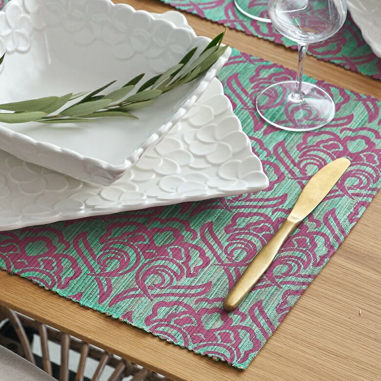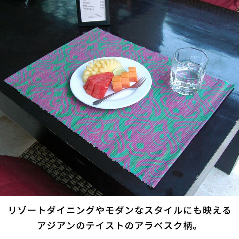 天然素材を使ったアジアンランチョンマット。いつもの食卓でレストランの雰囲気を味わえるバリ島の人気アジアン雑貨 ウォーターヒヤシンスのアジアンランチョンマット ターコイズ×ピンク キッチンマット ティーマット テーブルウェア テーブルマット プレースマット プレイスマット モダン ランチマット アジアン雑貨 アジア雑貨 四角 食卓 リゾート メール便対応 [10810]