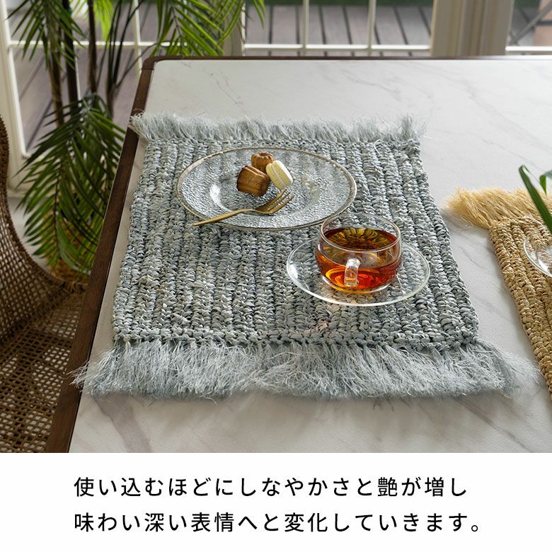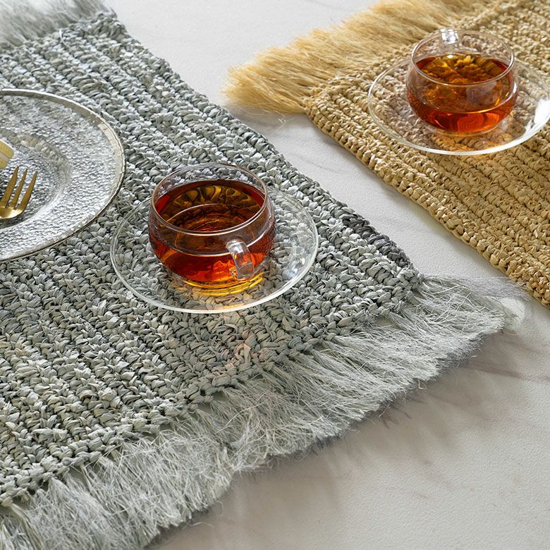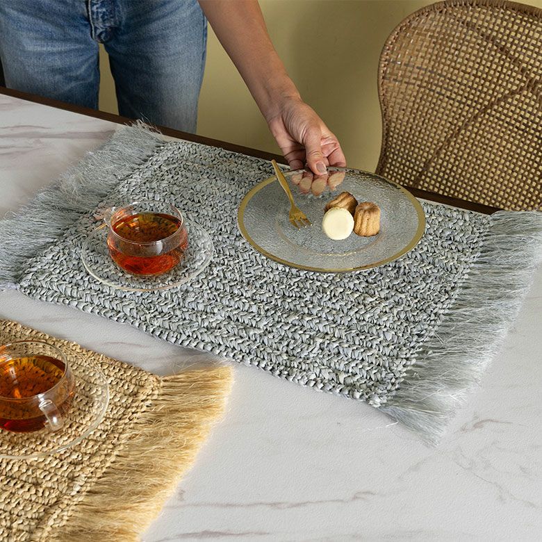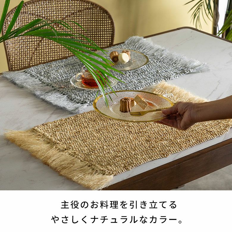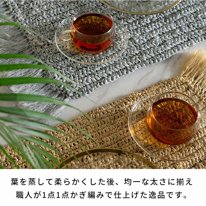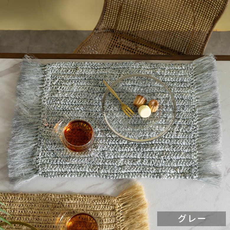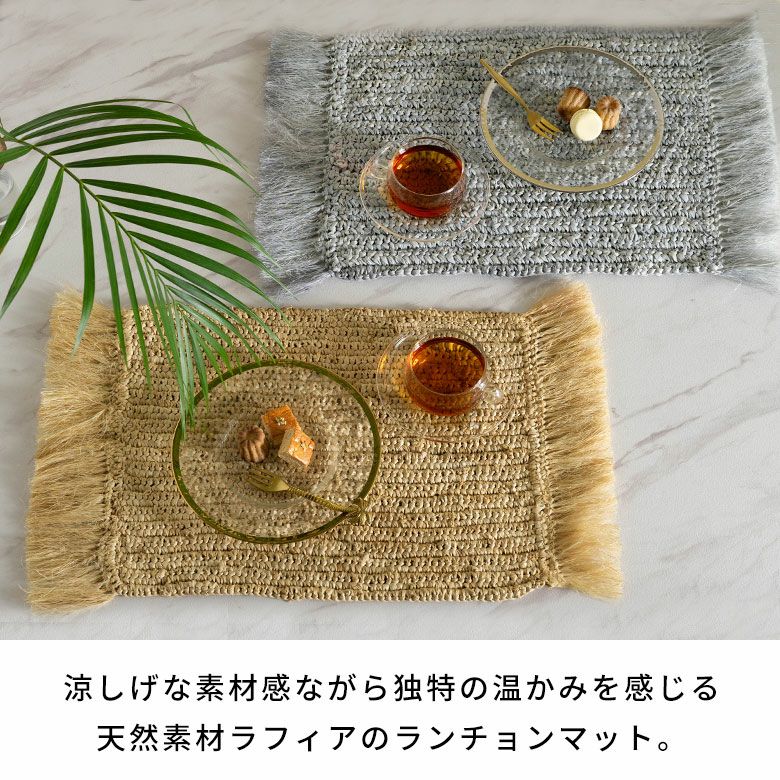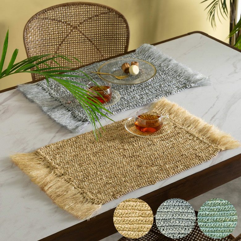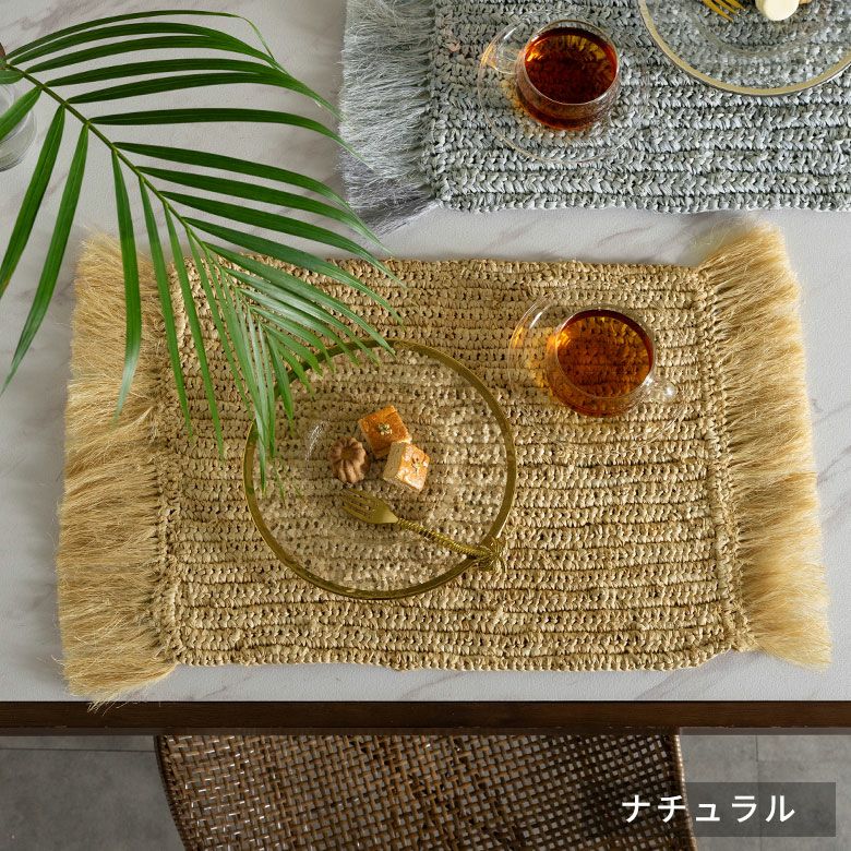 プレイスマット プレースマット キッチン雑貨 リゾート ランチョンマット 天然素材 ラフィア製 フリンジ付き 60cm×34cm [13880]【 ランチマット おしゃれ ラフィア椰子 ラフィア素材 麦わら かわいい インテリア 長方形 フリンジ ナチュラル リゾートインテリア アジアン 雑貨 アジアン雑貨 バリ島 】