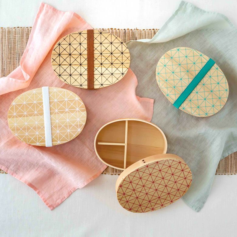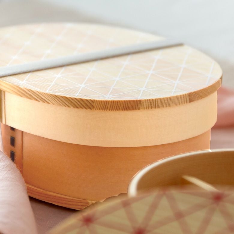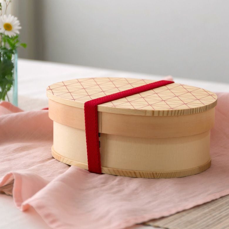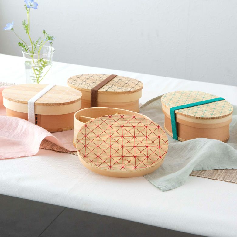 わっぱ弁当 遠足 お花見 運動会 通気性 保湿性 赤 緑 白 黒 ランチボックス 弁当箱 わっぱ 楕円 木製 格子柄 720ml [90294]【 曲げわっぱ お弁当箱 天然木 白木 小判型 レッド グリーン ホワイト ブラック 格子模様 柄付き 仕切り付き ゴムバンド付き 伝統工芸 ランチ 調湿効果 シンプル ナチュラル 和食】