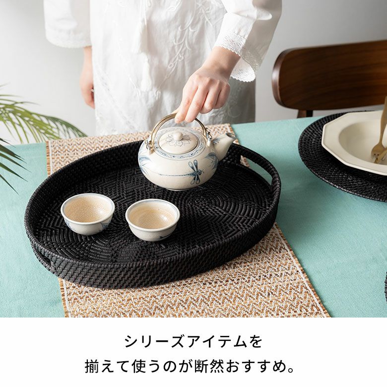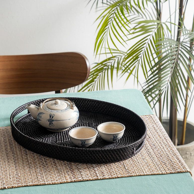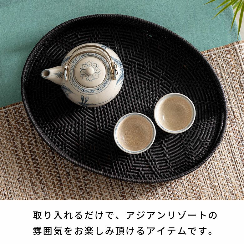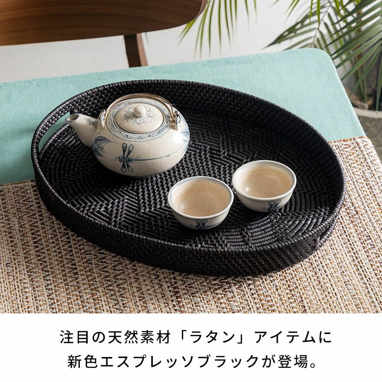 テーブル小物 収納トレイ パーティー クリスマス ハロウィン レストラン カフェ 店舗用 テーブルコーディネート デコレーショントレー ディスプレイトレー 什器 撮影 ギフト プレゼント トレイ ラタン 籐 ブラック オーバル 楕円 お盆 トレー バスケットトレイ バスケット 約 W 42cm D 32cm H 5cm デコレーショントレイ ディスプレイトレイ テーブルウエア ダイニング キッチン キッチン雑貨 おしゃれ 北欧 リゾート 雑貨 インテリア アジアン [14109]