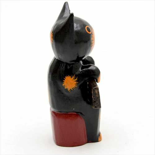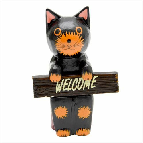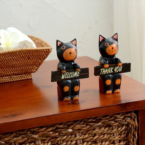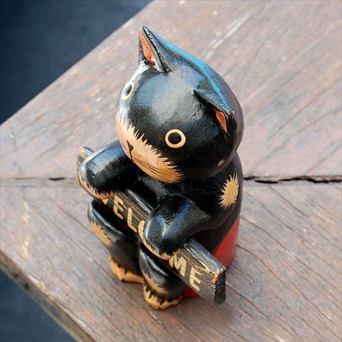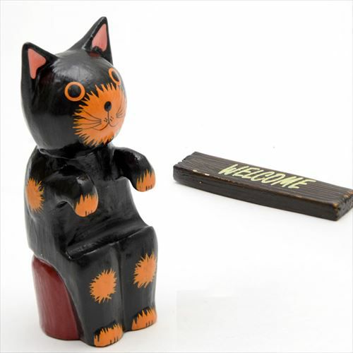 玄関やお店の入口で、家族やお客様を明るく迎えてくれる、木製バリネコのオブジェ。