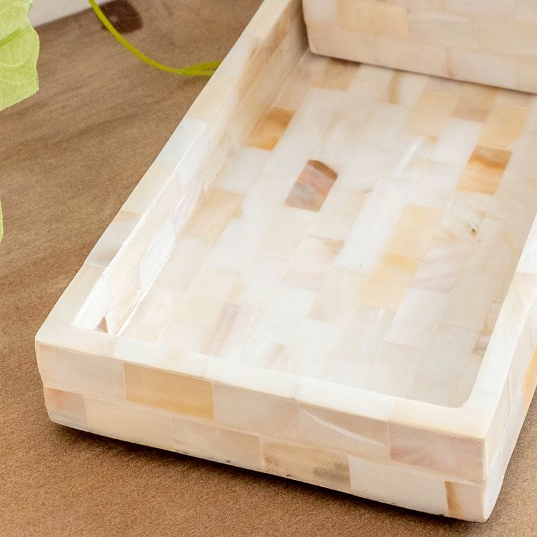 パルシェ 真珠貝 ハンドメイド かわいい ナチュラル トレイ おしゃれ 小サイズ 約 W 10cm D 10cm H 2.5cm 長方形 アクセサリートレー アクセサリートレイ トレー 小物入れ ケース パール シェル [vn51137]【 収納 小物ケース アクセサリー 来客用 タオル置き リゾート エレガント 高級感 アジアン雑貨 バリ雑貨 】