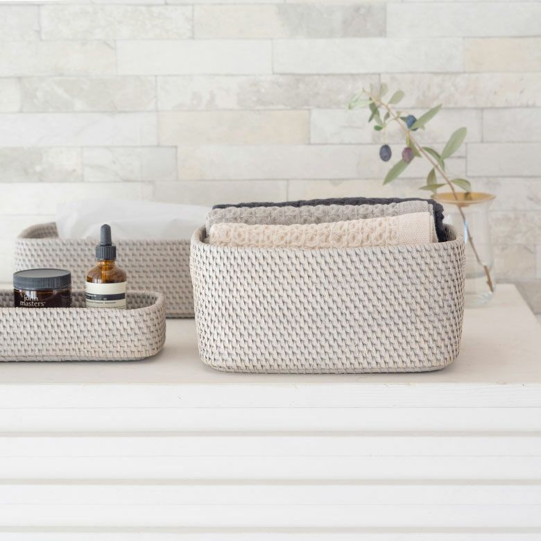 洗面台まわりで活躍するトレイやバスケット、小物入れなど