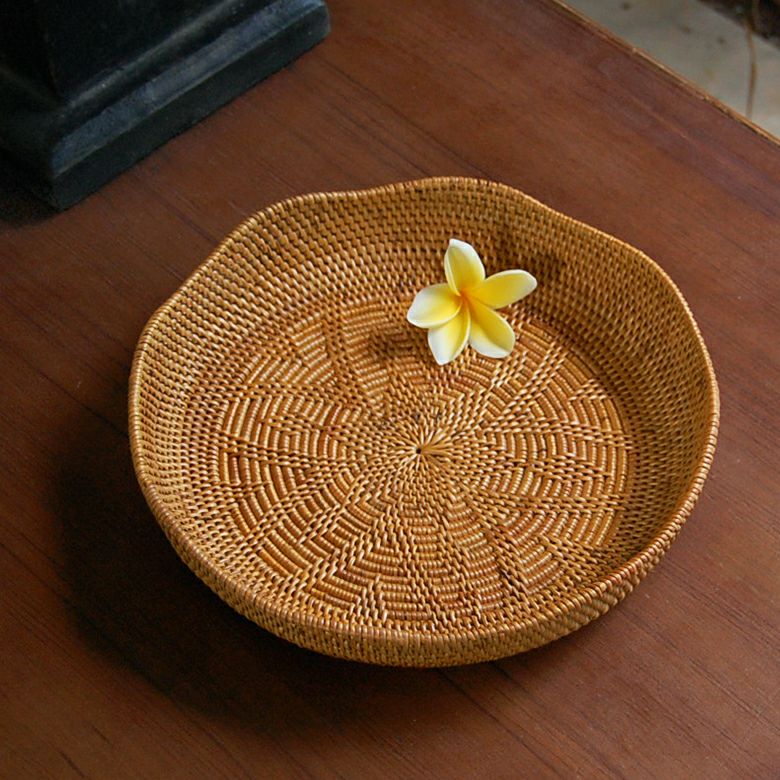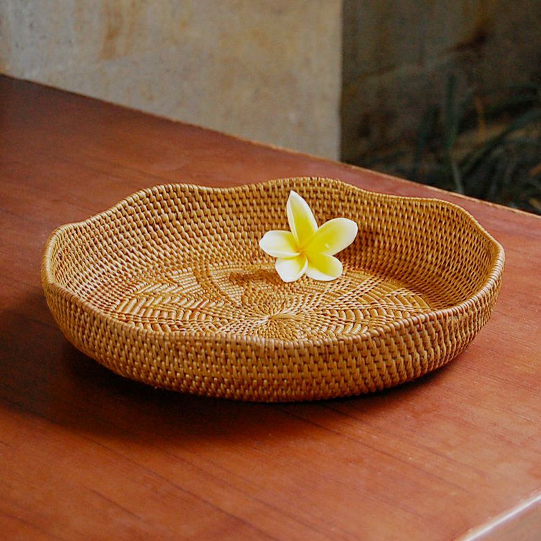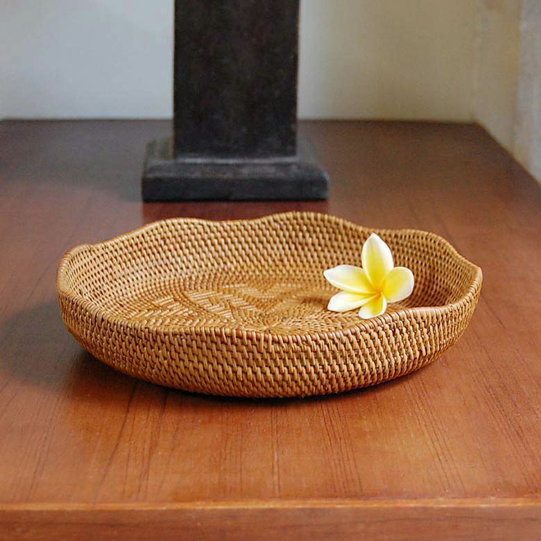 天然素材の「アタ」を使いひとつずつ丁寧に編んでつくられた、トレイ型のバスケット。