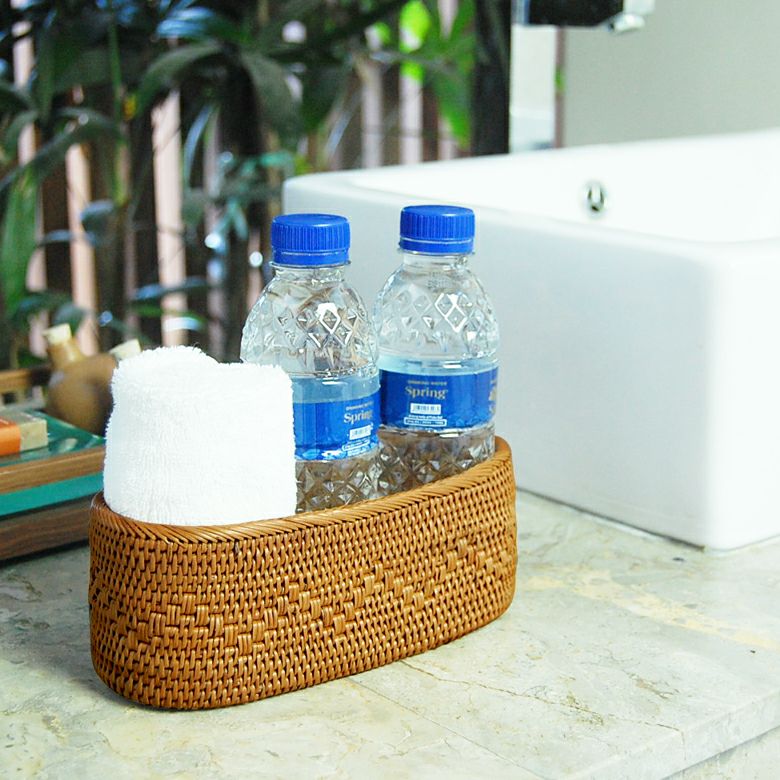 | バリ島のトゥガナン村で作られたアタで編まれた小物入れケース。ナチュラル系のアイテムと言えばやっぱりアタ。職人さんの手作業で作られる細かい編み目とココナッツでスモークすることで生まれる深い色合いがアジアンなお部屋にマッチします。ひとつ作り上げるのにとても時間の掛る、手間暇かけたバスケット。見た目と違って、水に強いのもアタの特徴。少しぐらい濡れてもきちんと乾かせば全く問題ありません。サイズも丁度よく、リビングなどの散らかる小物をこれに入れるとオシャレに収納できます。これひとつでお部屋をアジアンな雰囲気に変えてくれる小物入れケースをぜひ、ご自宅で使ってみてくださいね♪ | |||||
