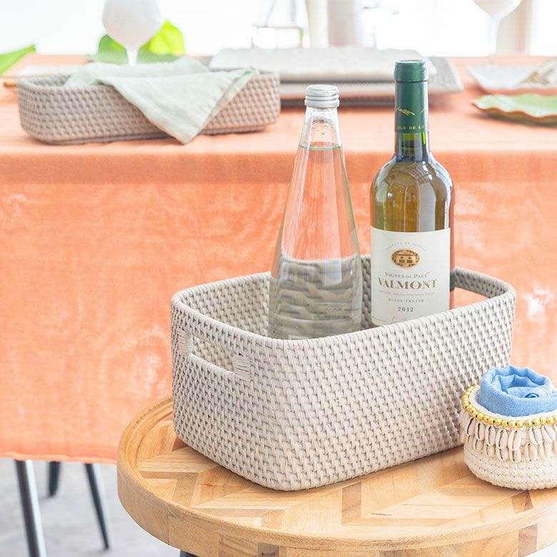持ち手付き 引き出し モダン 収納 ストッカー ホテル カフェ バスケット かご 籠 カゴ ボックス ケース ラタン 籐 ホワイト ナチュラル 約 W 20cm D 28cm H 13cm [13980]【 荷物 おもちゃ 書籍 CD DVD タオル ドライヤー 調味料 入れ リビング キッチン ダイニング アメニティ 北欧 リゾート コースタル バリ アジアン 雑貨 】