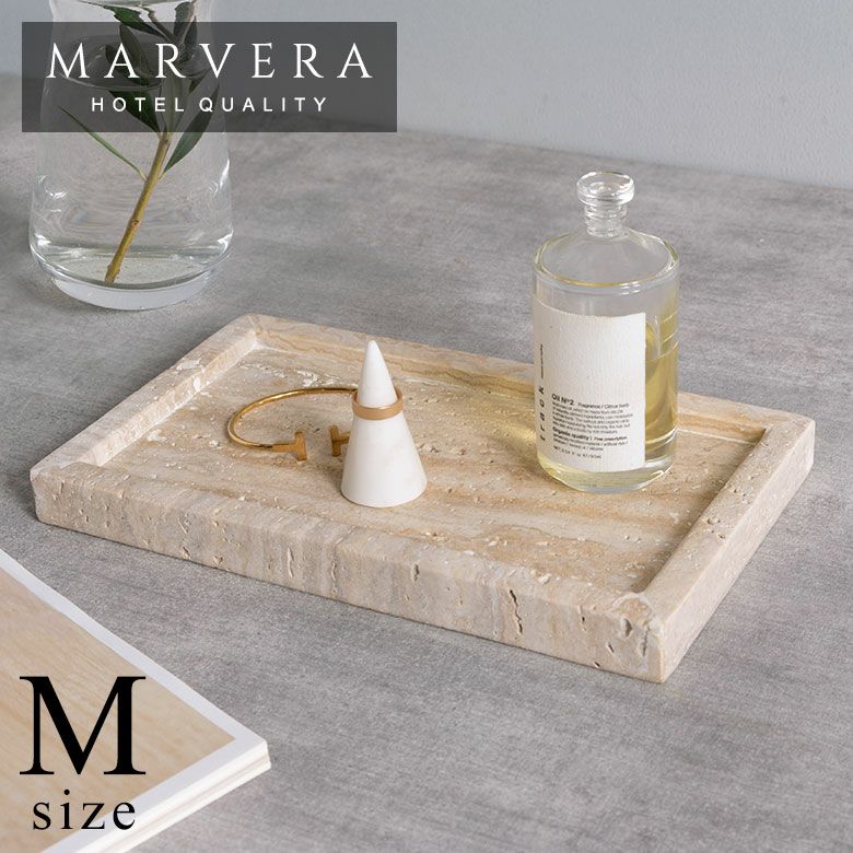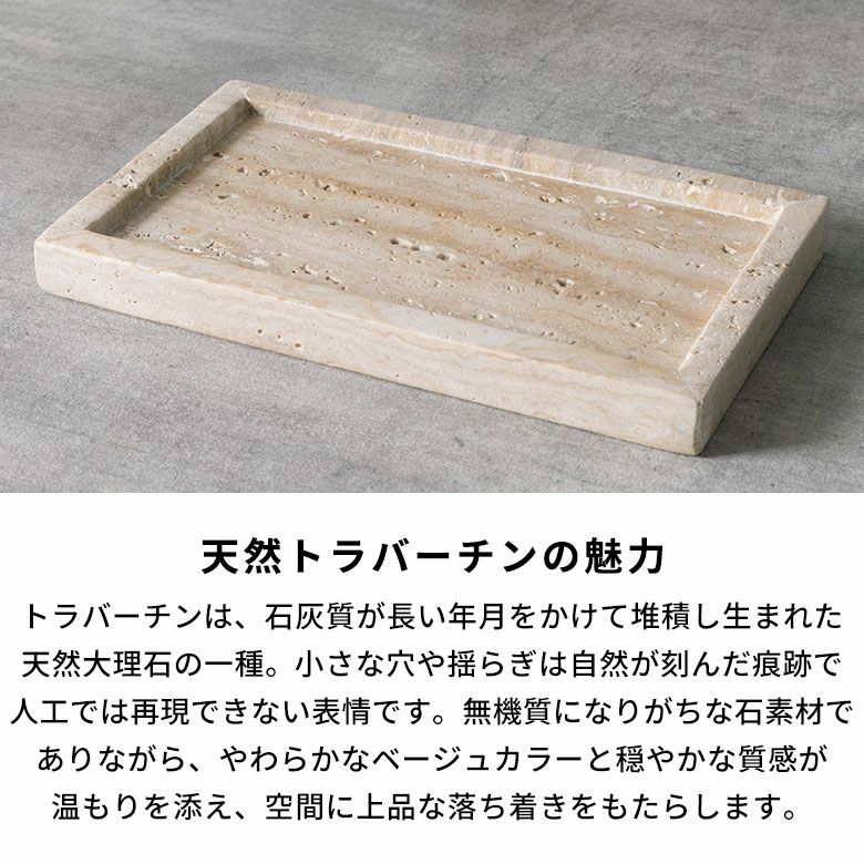 豊富なラインナップが魅力の大理石シリーズ、MARVERA(マーヴェラ)のトラバーチンの小物入れトレイSサイズ まるでホテルのようなモダンで上品な空間に格上げできるシンプルで洗練された天然石トラバーチンの小物入れトレー【MARVERA-マーヴェラ】トレイSサイズ [34653]
