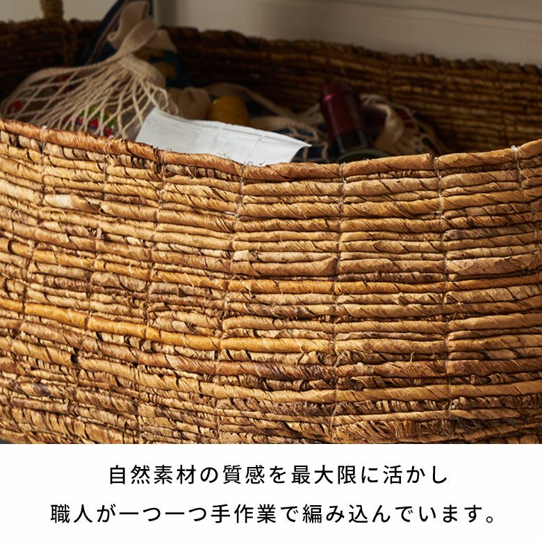 バリ島の職人の手仕事から生まれる、温もり溢れるアバカ素材のバスケット。お部屋に置くだけで、アジアンリゾートのような穏やかな空間が広がります。収納バスケットとしてはもちろん、お部屋のインテリアとしても活躍。天然素材の優しい風合いは、どんなインテリアにも馴染みやすく、お部屋に置いてあるだけで心が安らぐアイテムです。