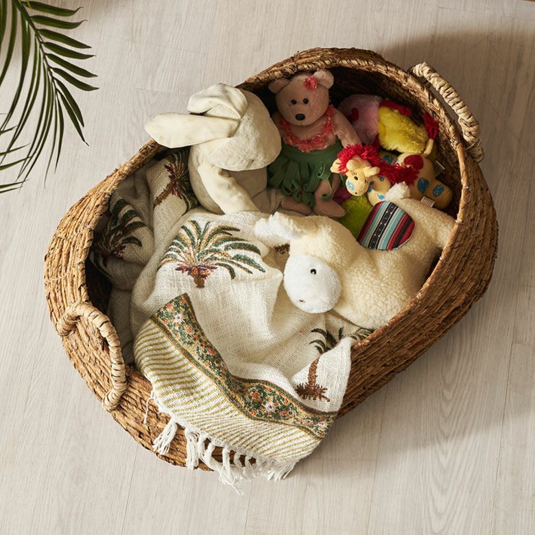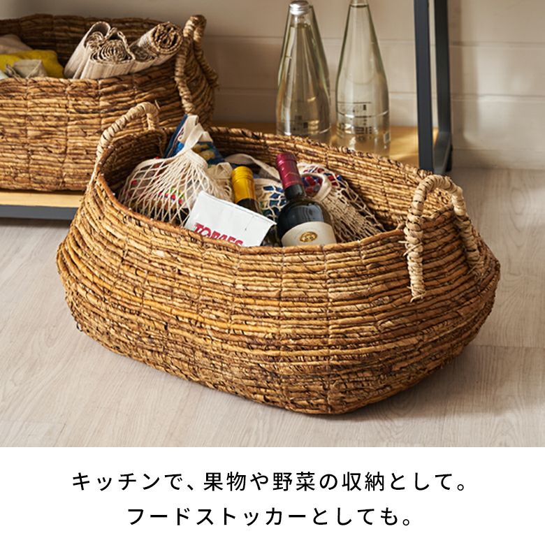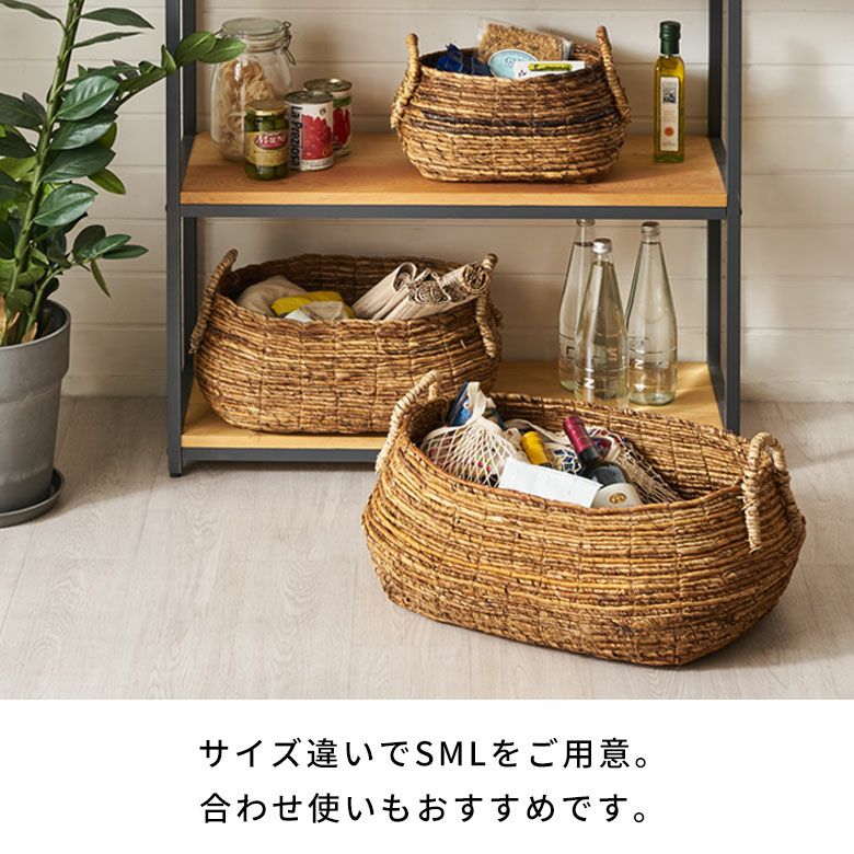 サイズはS、M、Lの3サイズ展開。Lサイズは、たっぷり収納できる大容量サイズ。リビングでブランケットやクッションを収納したり、子供部屋のおもちゃをどさっと収納するのに便利です。果物やお菓子をおしゃれに収納したり、キッチンアイテムを入れておくバスケットとしても。あなただけの使い方で暮らしを楽しんで。