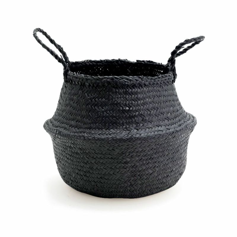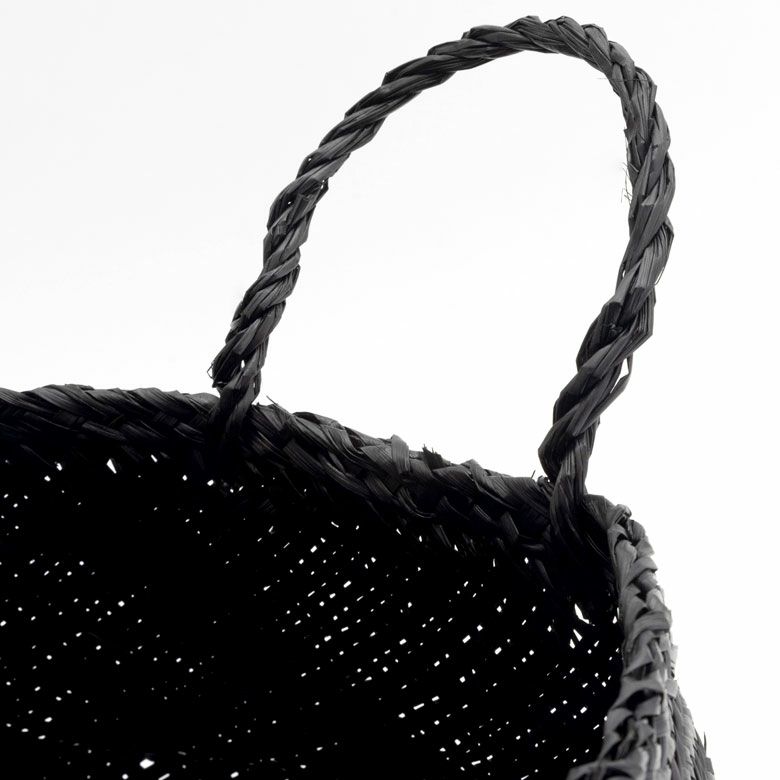 プランターカバー モダン リビング キッチン ダイニング バスケット かご Sサイズ 2way シーグラス ラウンド ブラック 黒 折りたたみ W 30cm D 30cm H 26cm [51292]【 ハンドル付き かご 籠 収納バスケット おもちゃ入れ 荷物入れ 玄関 スリッパ 収納 ランドリーバスケット おしゃれ リゾート ナチュラル バリ アジアン 雑貨 】