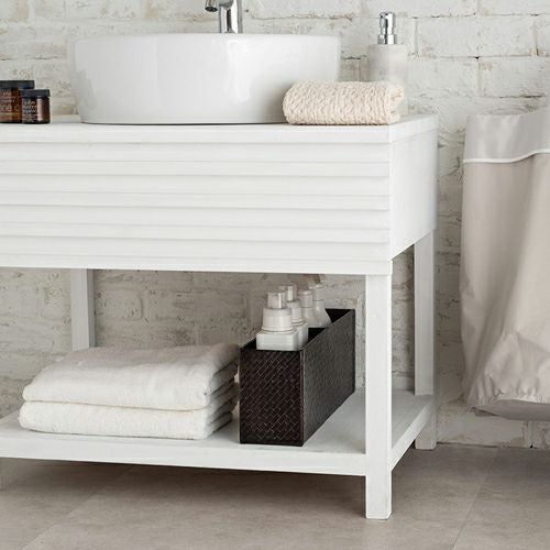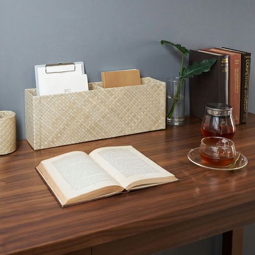 一見レザーのような重厚感があり、生活感が出がちな日用品もエレガントに収納。