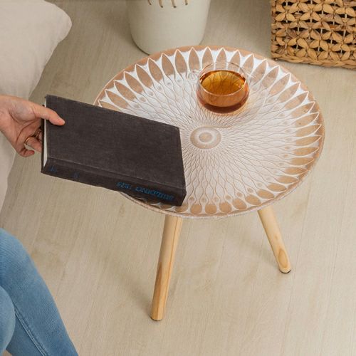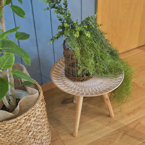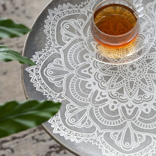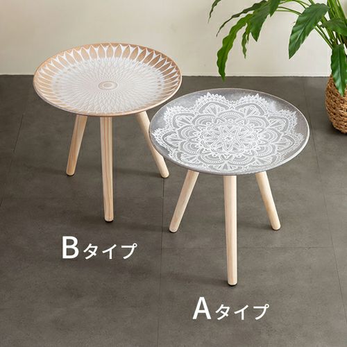 繊細なモロッカン柄の天板と、天然木の組み合わせが魅力的なサイドテーブル。