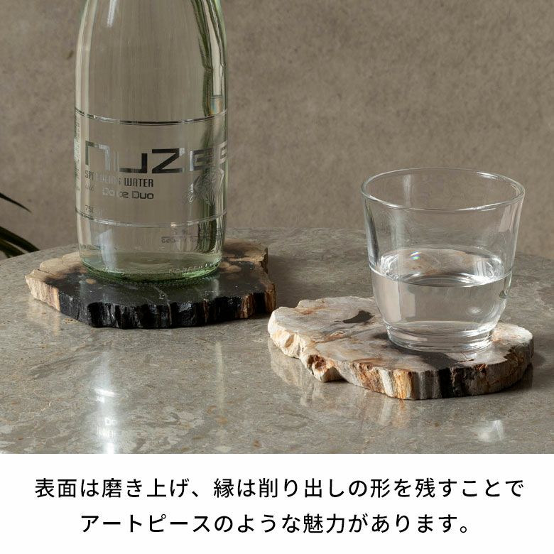その美しい木目と鉱物のような光沢を活かして仕上げた、重厚感ある天然石コースター。必要な枚数分、1枚からご注文いただける単品販売ページです。